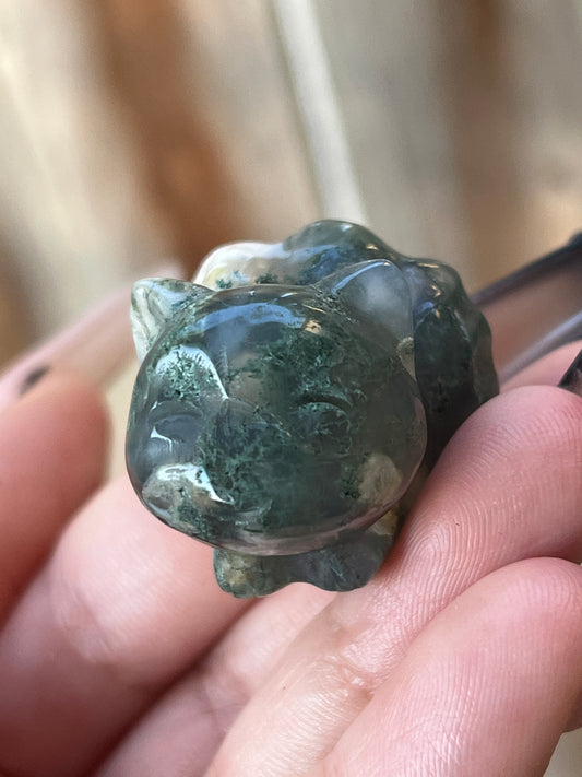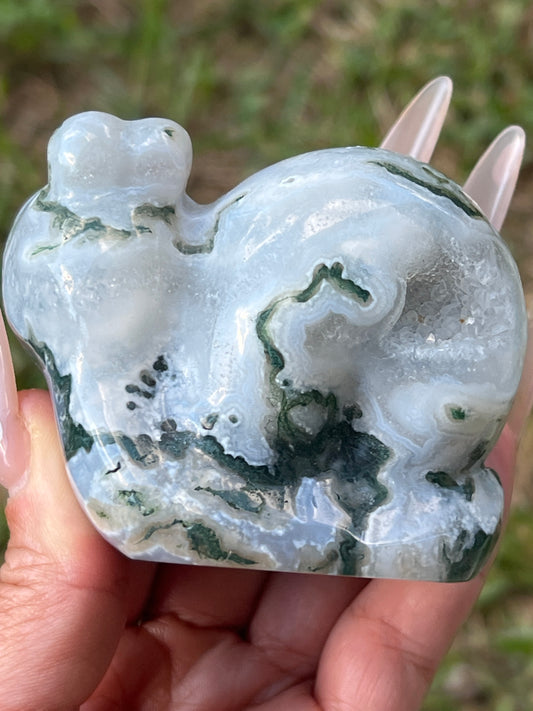 “Moss-asaurus” Druzy Moss Agate Dino Skull