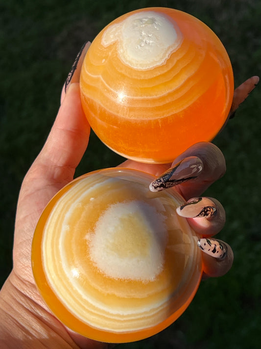 “Blood Orange & Cream” Banded Orange Calcite Spheres