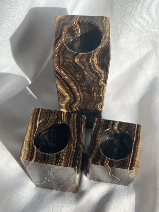 “Cacao Glow” Chocolate Calcite Tea Light Candle Holder Set