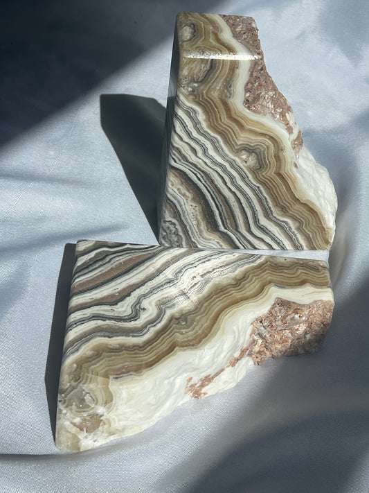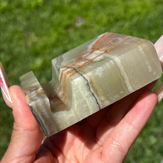 “Lunar Cycle” Onyx & Calcite Crescent Moon Tea Light Candle Holders