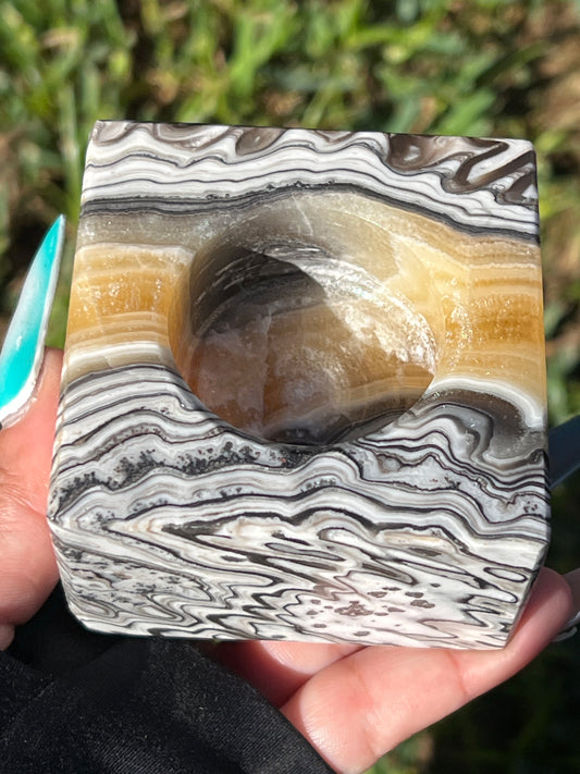 “Subtle Glow” Banded Calcite Tealight Candle Holders