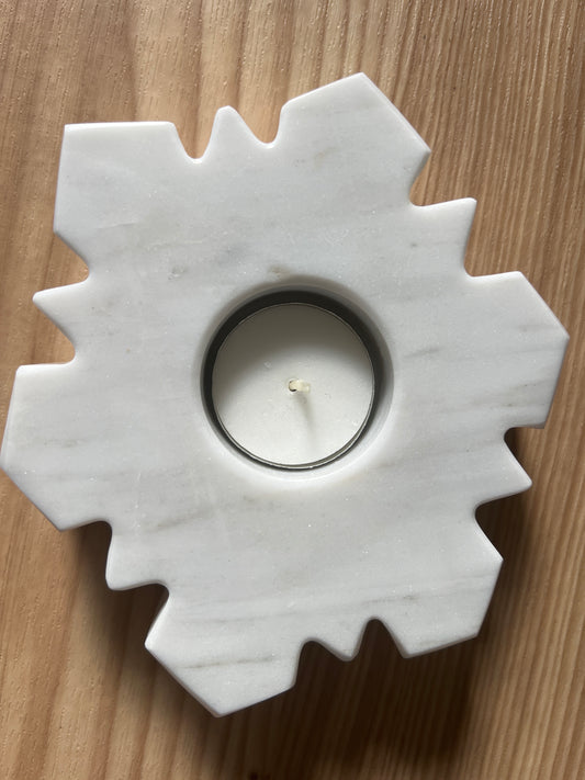 “Snowfall” Marble Snowflake Tealight Candle Holders