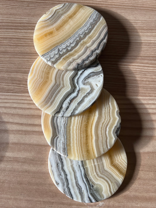 “Citrus Drip” Banded Calcite Coaster Sets