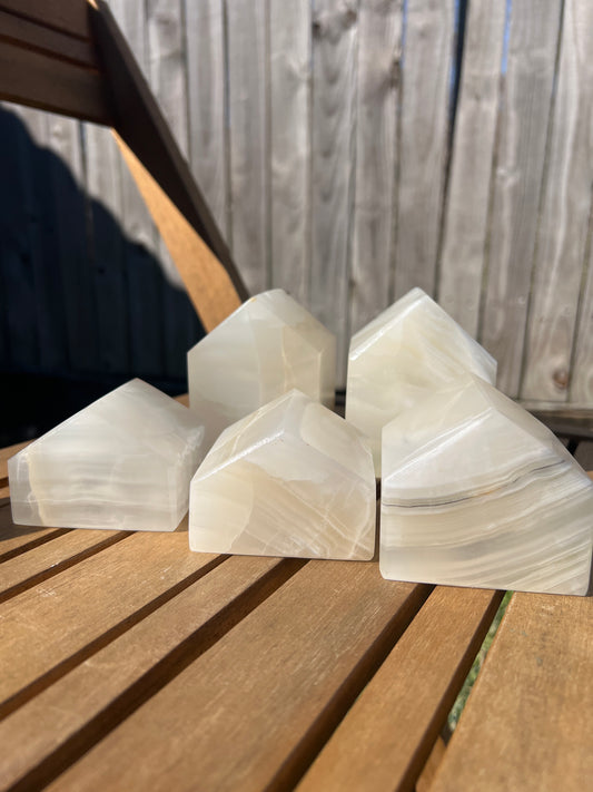 “Lunar Cycle” Onyx & Calcite Crescent Moon Tea Light Candle Holders