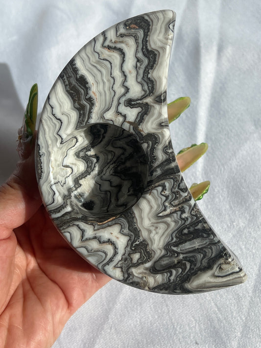 “Enlighten” Zebra Calcite Crescent Moon Bowls