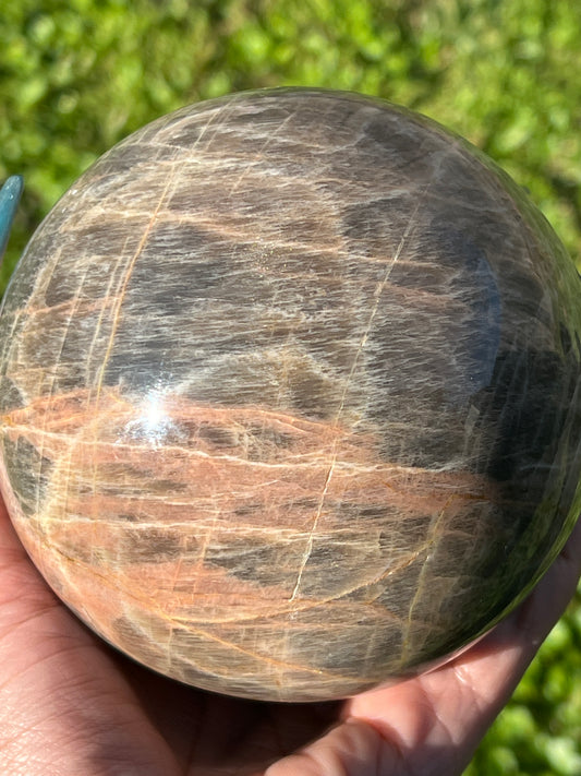 “Peachy Black Tea” Black Moonstone and Sunstone Sphere