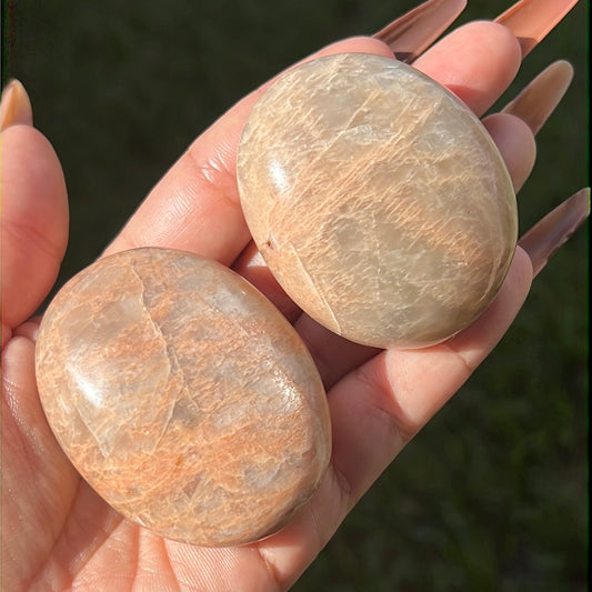 “Peaches n’ Sheen” Peach Moonstone Palm Stones