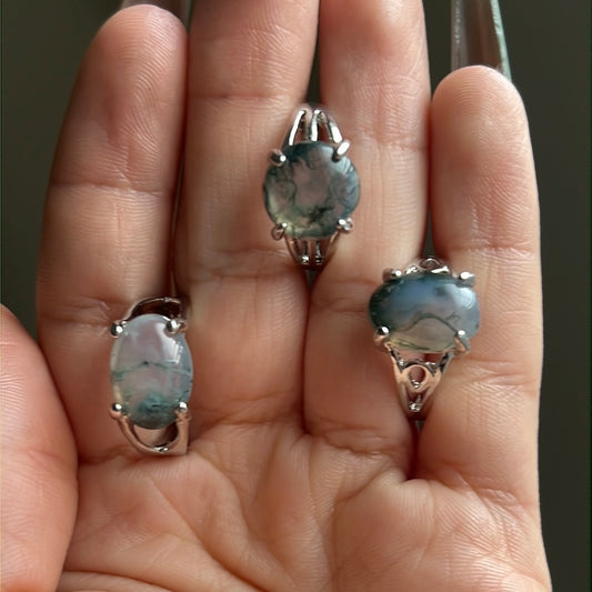 Non-Adjustable Moss Agate Rings