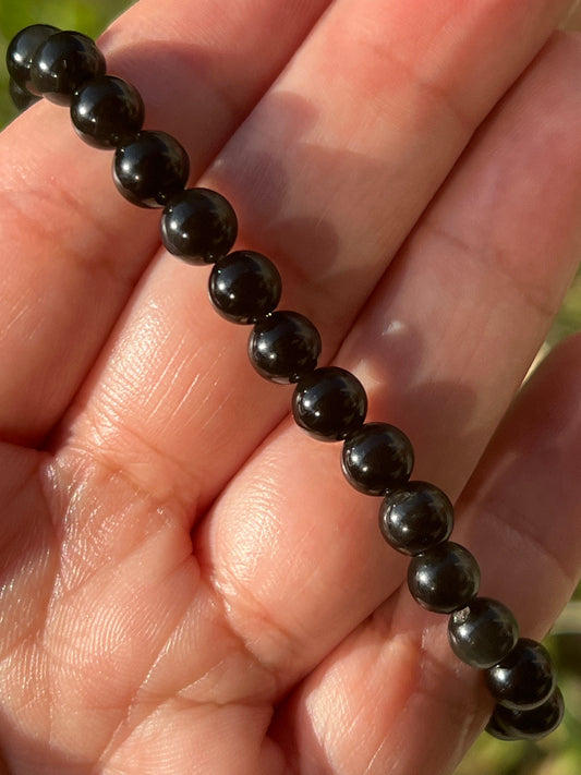 “Highly Protected” Black Agate and Satin Spar Bracelet