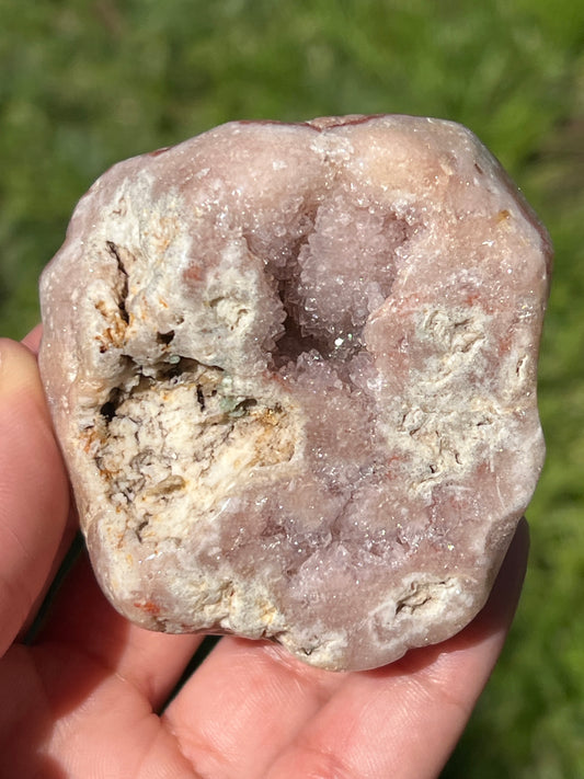 “Brilliant Bouquet” Sparkling Pink Amethyst & Flower Agate Palm Stone