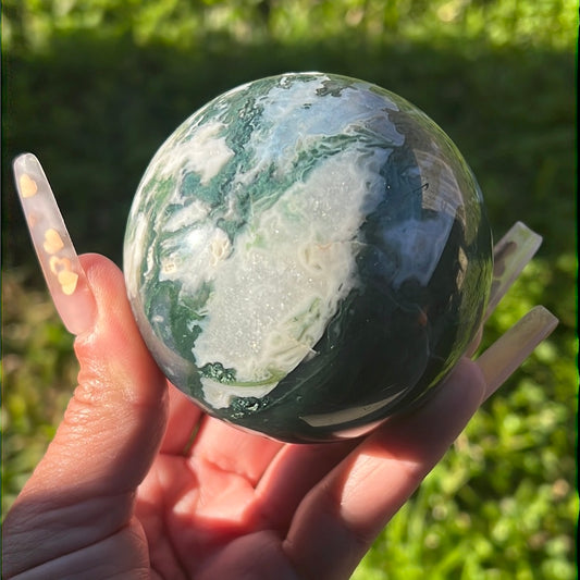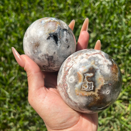 “Fairytale” Flower Agate with Pink Amethyst Sphere