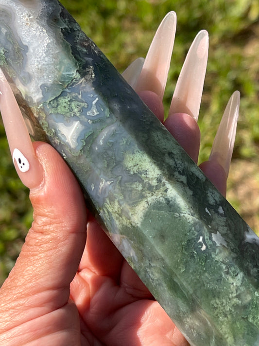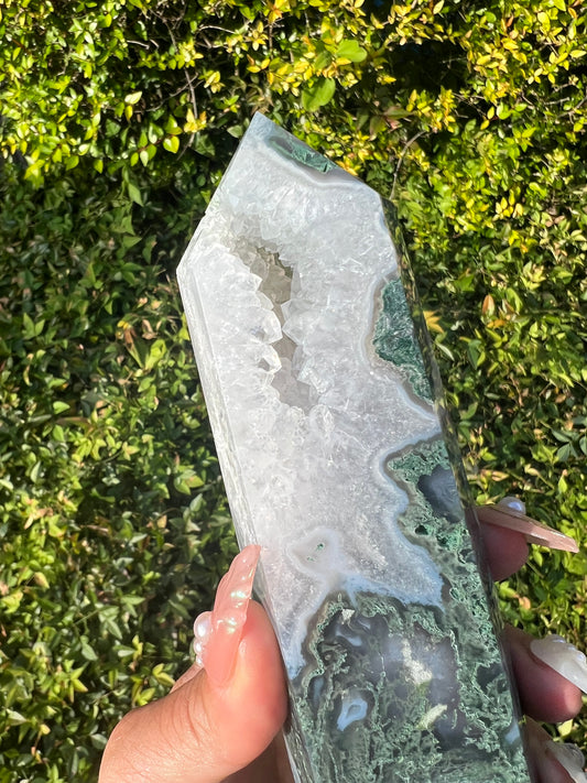 “Everglades” Druzy Moss Agate Tower