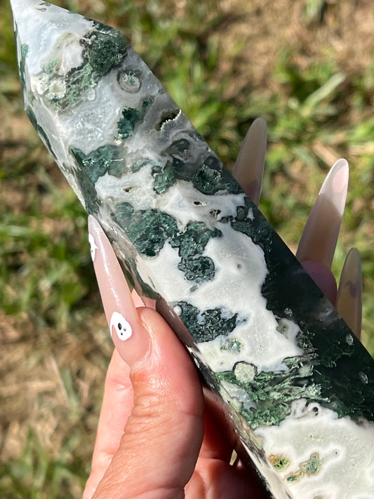 “Spring Meadow” Moss Agate Tower