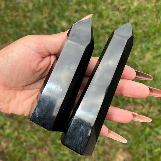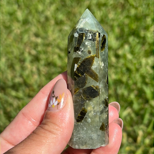 “Contemporary Cookies n’ Cream” Black Tourmaline in Quartz Tower