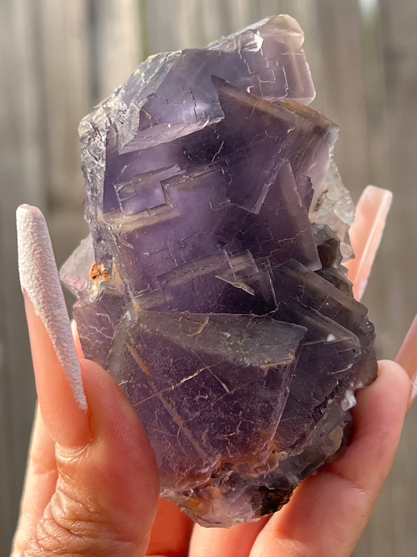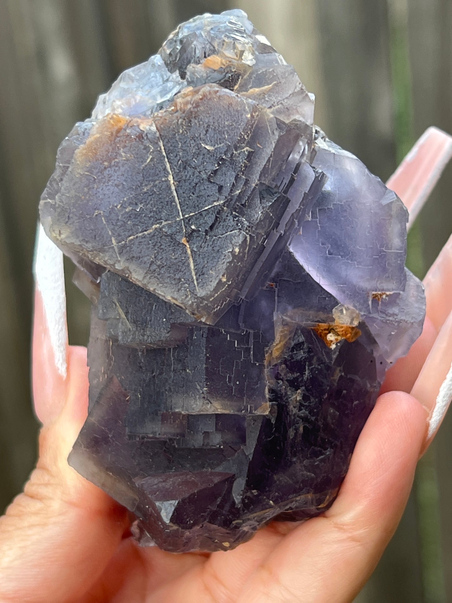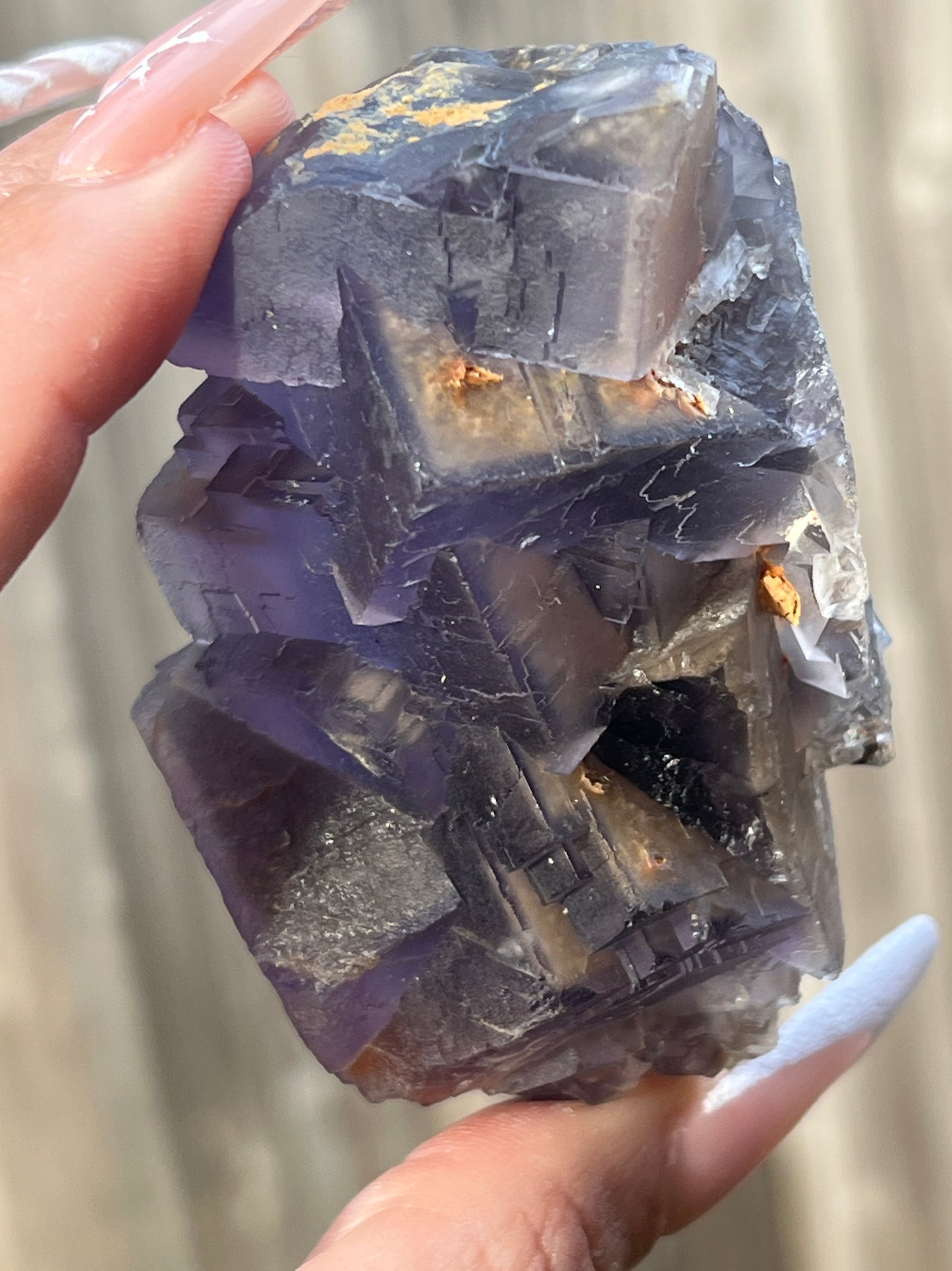Deep violet and blue peel through chunky juicy cubes in this stunning Fluorite cluster from Balochistan, Pakistan. Enjoy the combined properties of focus, creativity, productivity, relaxation, and protection as well as intuitive enhancement.