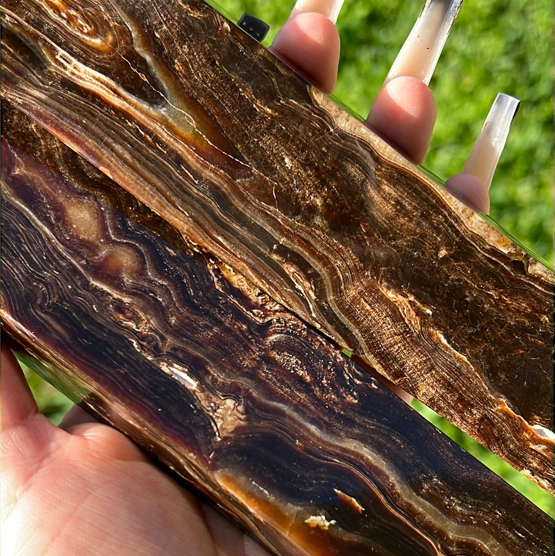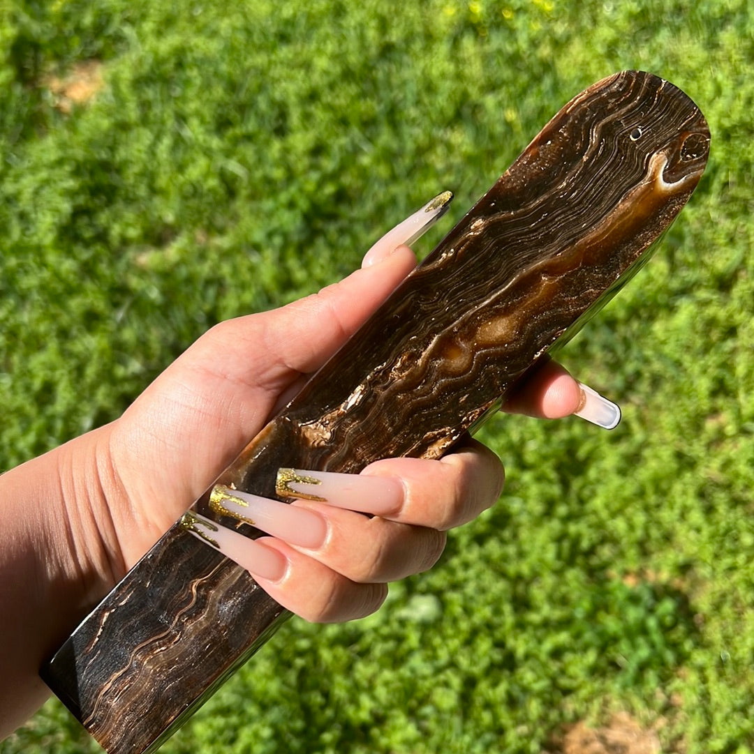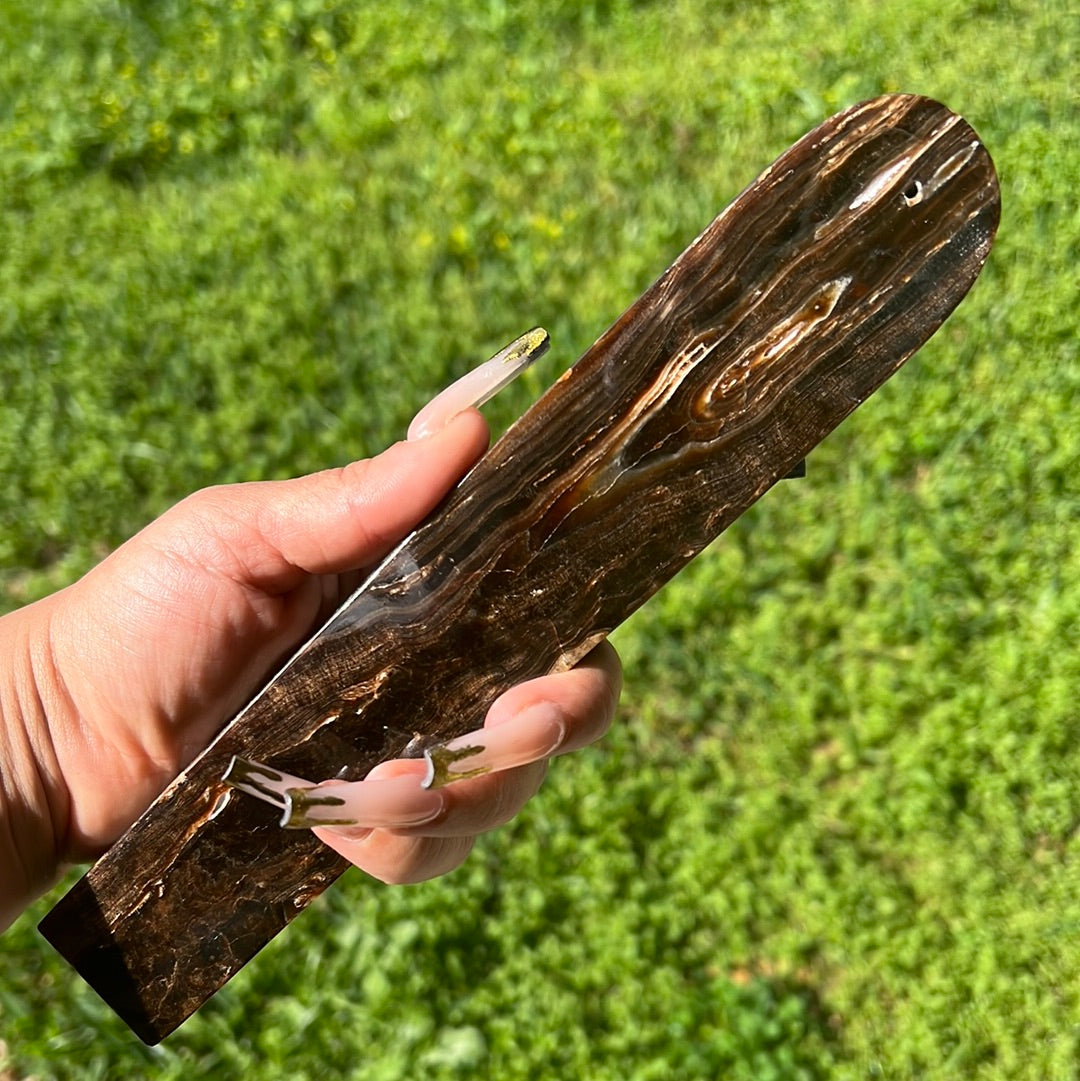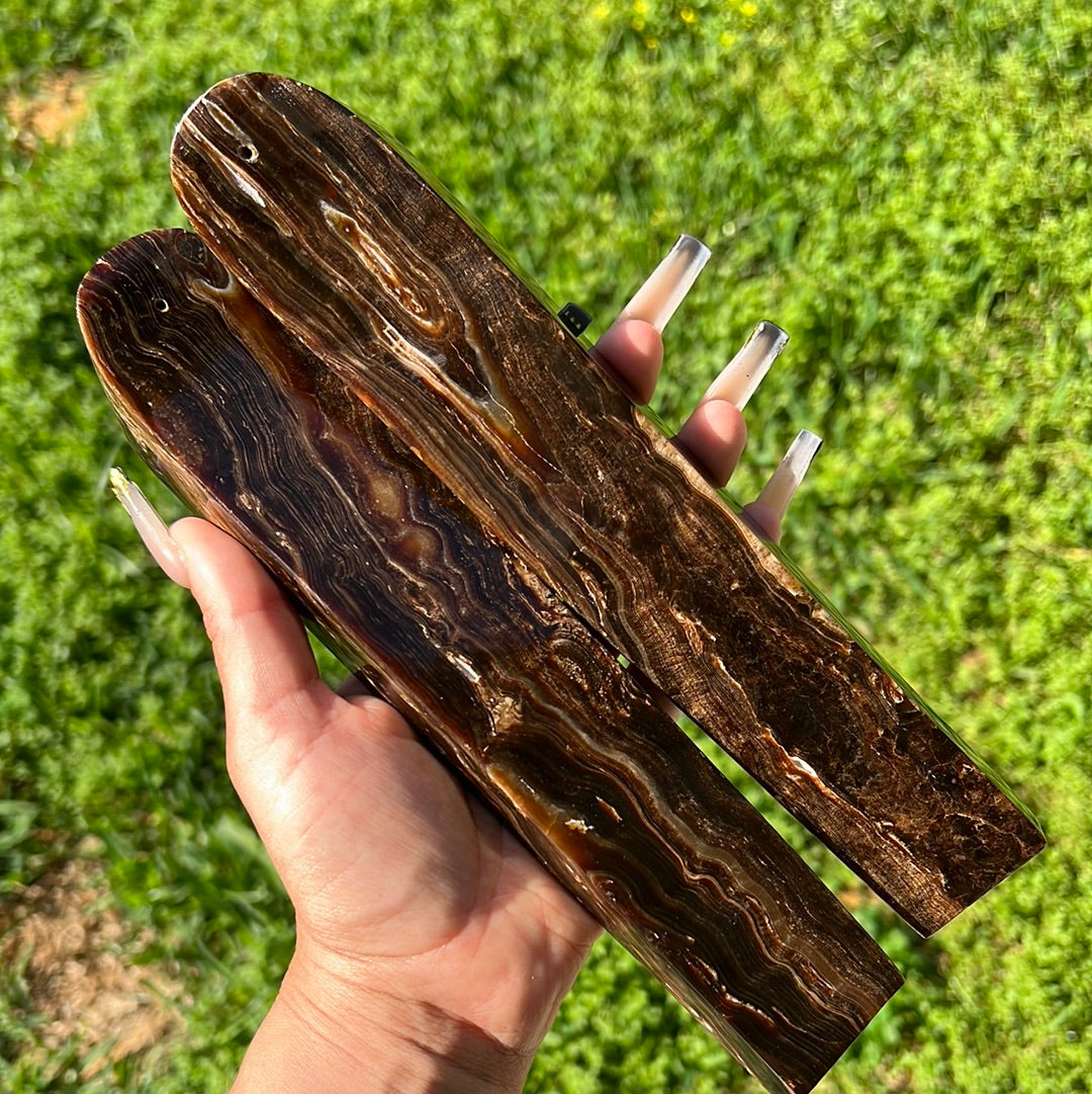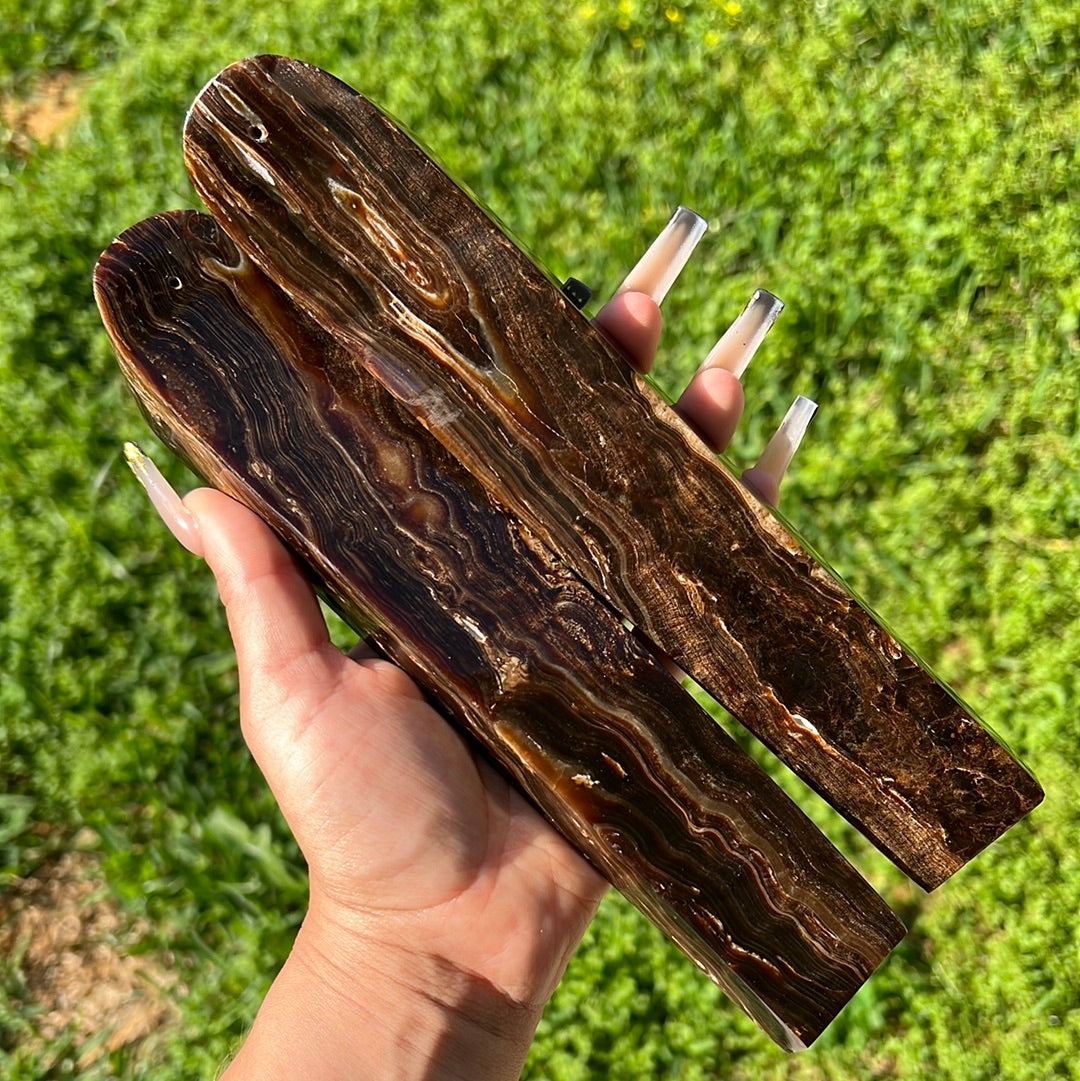 Amazing dark brown Chocolate Calcite Incense Holders with a tempting Special Dark Chocolate look! The hole is drilled through the bottom, and still holds the incense sticks securely.