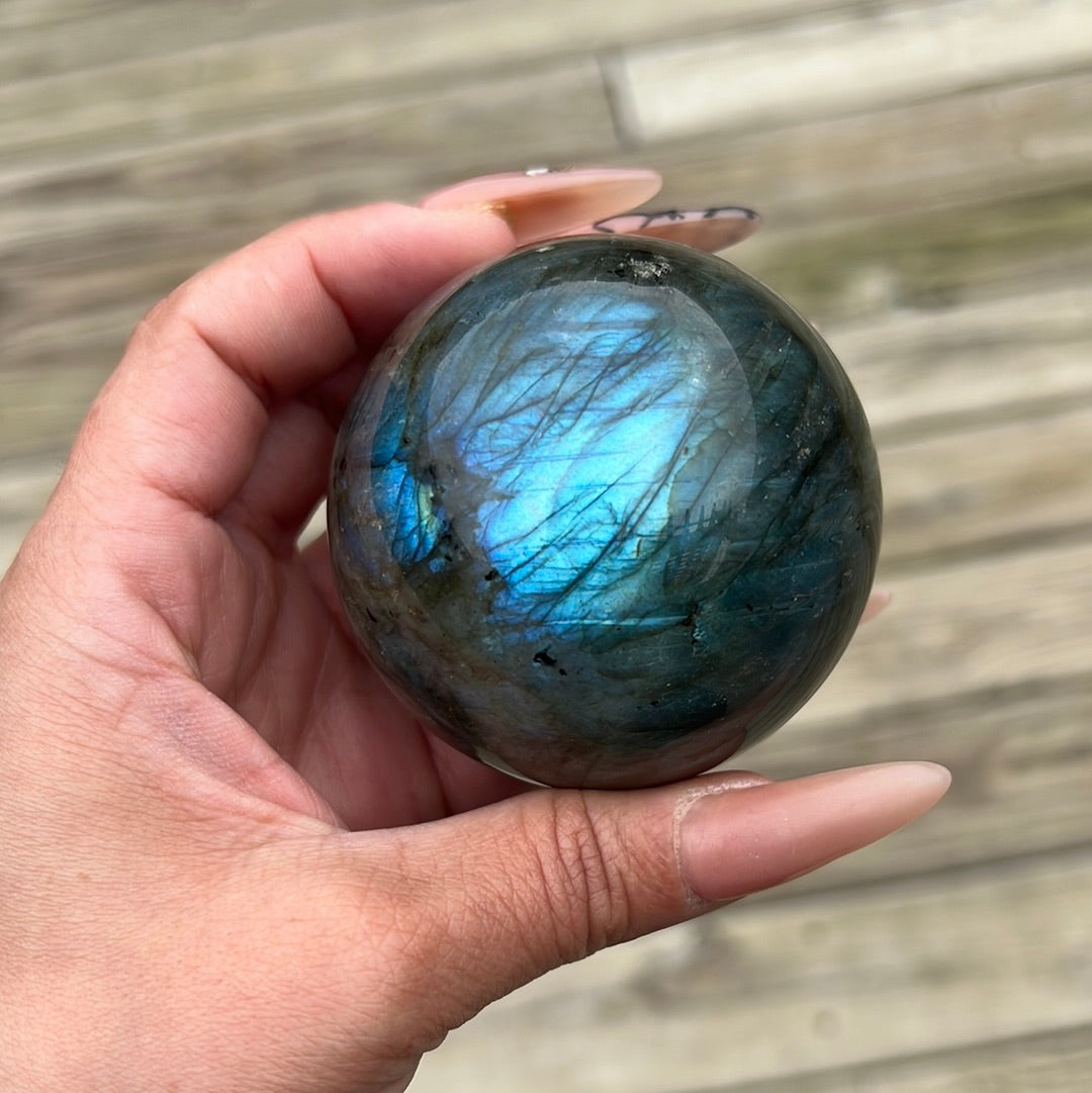 Stunning labradorite spheres with primarily blue flash! *Individually sold