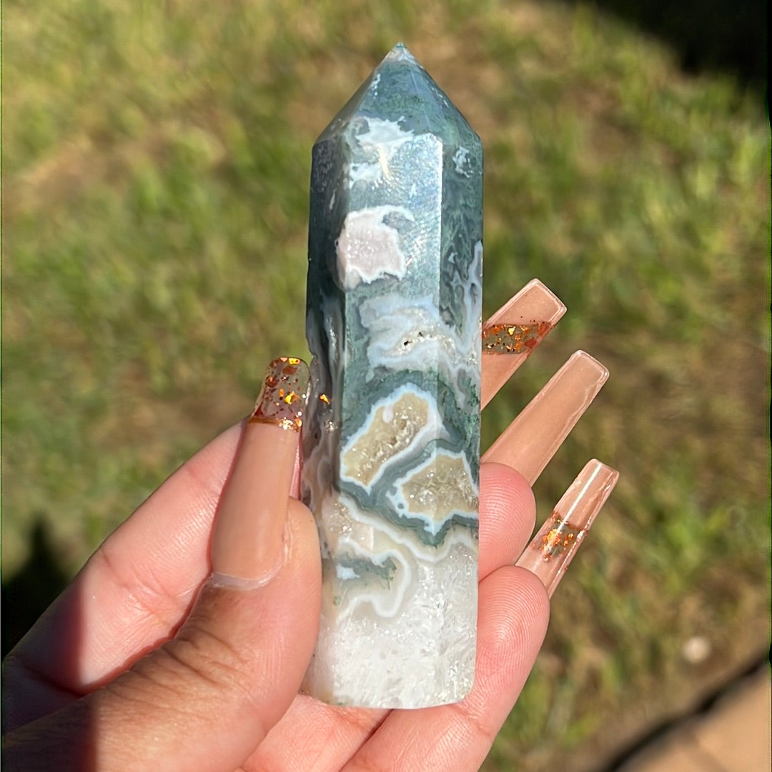 Small but mighty Moss Agate points with unique colors and banding! *Individually sold