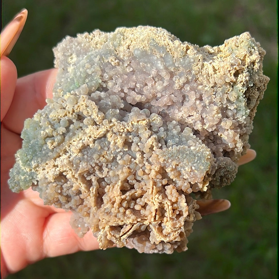 Large Grape Agate clusters with plenty of grape-like botryoidal formation and even a few little druzy pockets here and there!
