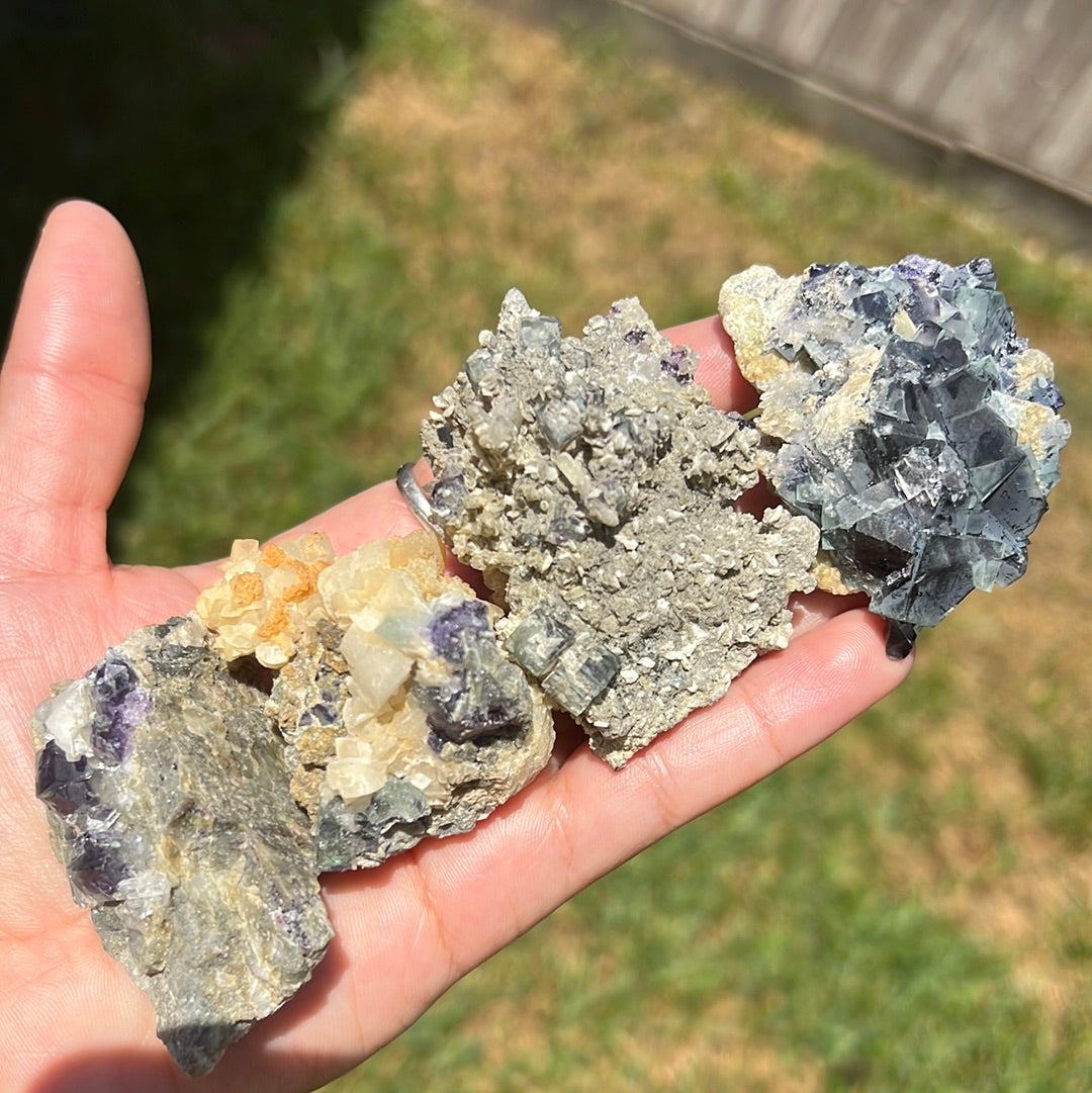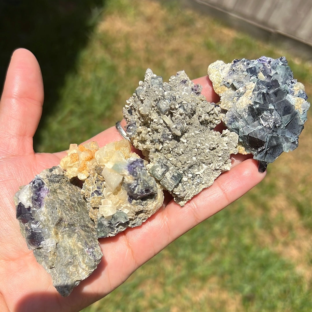 These small Yindu Fluorite Clusters are so unique and stunning! The purple and blue-green cubes give off vibrant 90’s vibe!