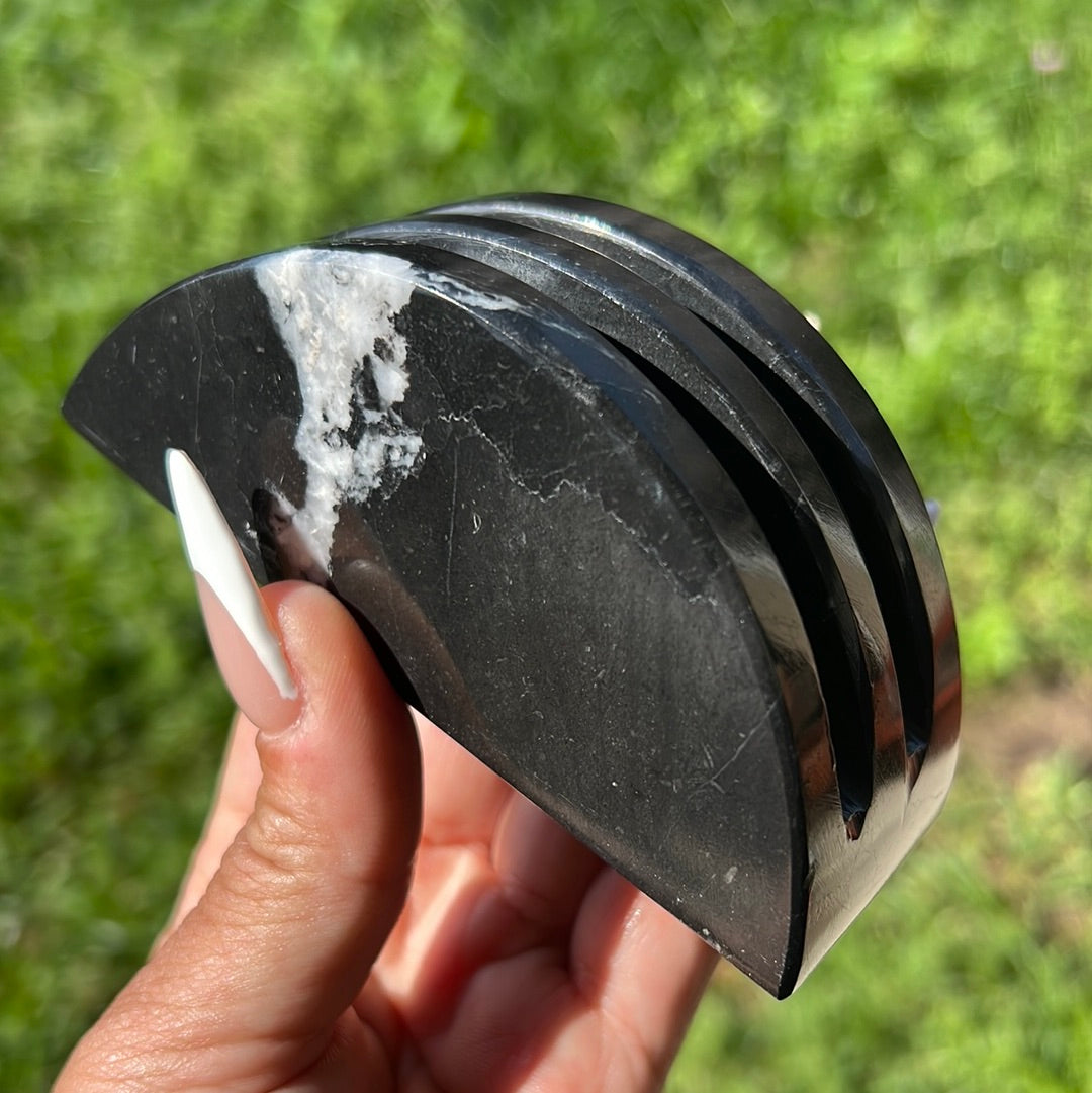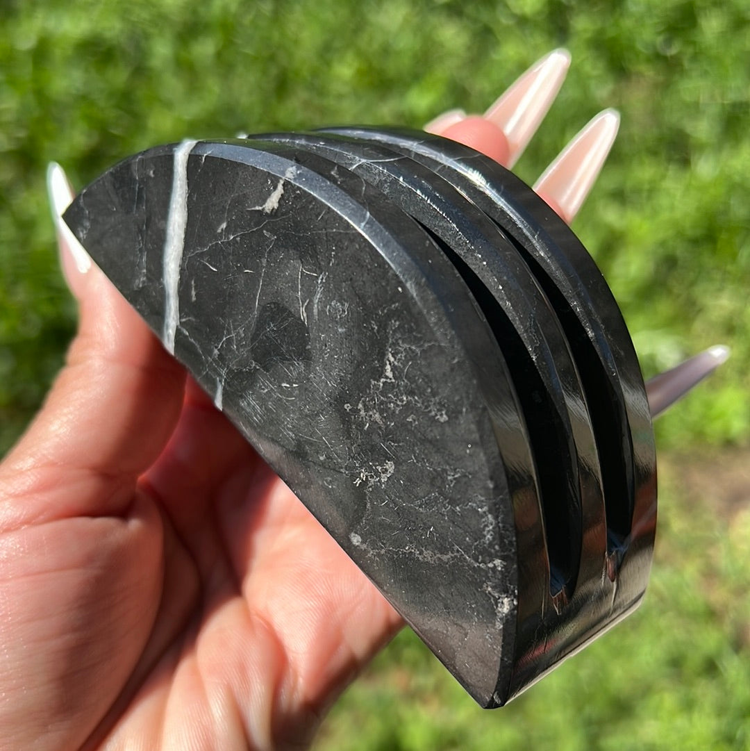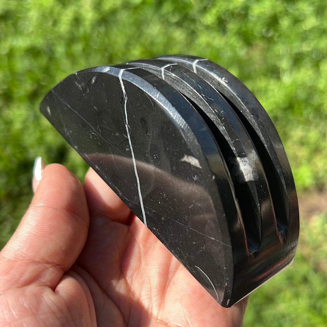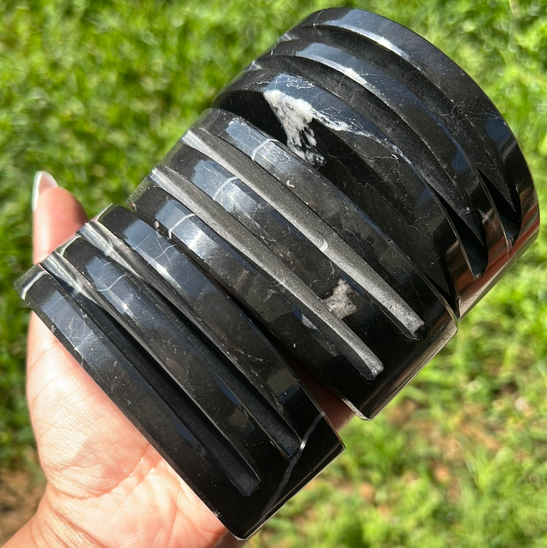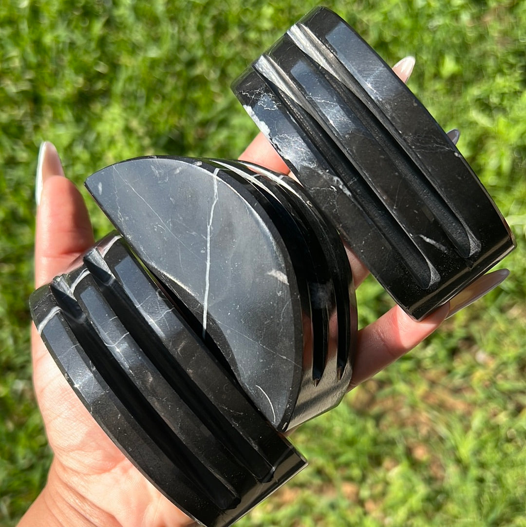 Organize your clutter in style with our Black Marble Card Holders. Made with gorgeous black marble, these card holders not only add a touch of elegance to your desk or office space, but also provide practicality and organization for all your cards. With its sleek design and durable properties, these card holders are a must-have for any professional.