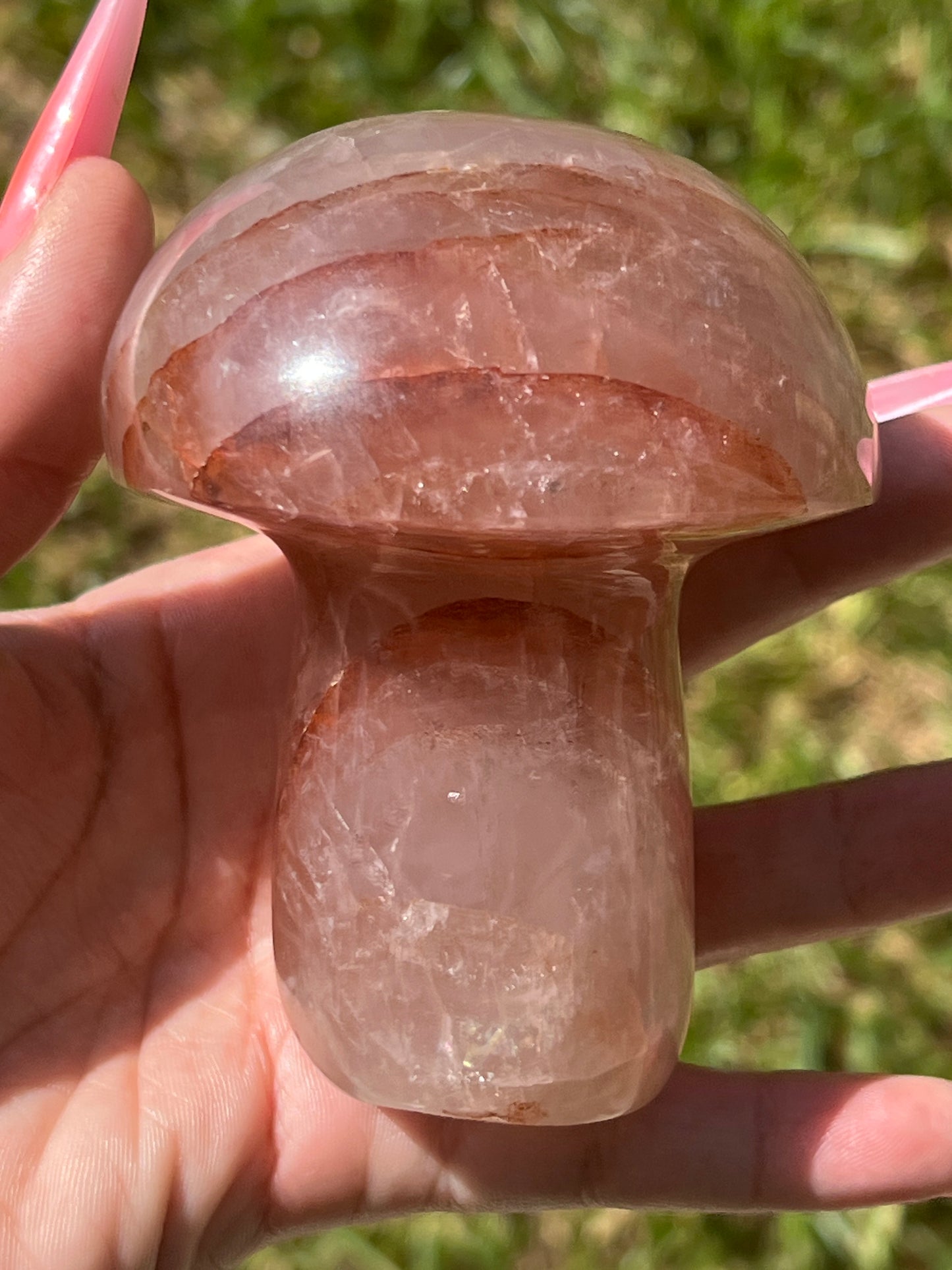 Experience the beauty and healing properties of this stunning Fire Quartz Mushroom. This unique fusion of grounding and motivating Fire Quartz and sacred mushroom symbolizes enlightenment and growth. The perfect addition to any collection, representing balance, harmony and transformation.