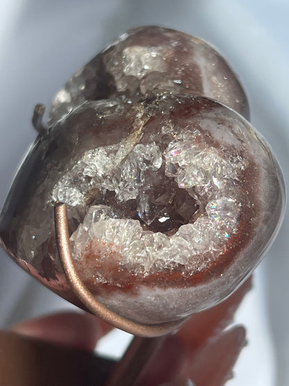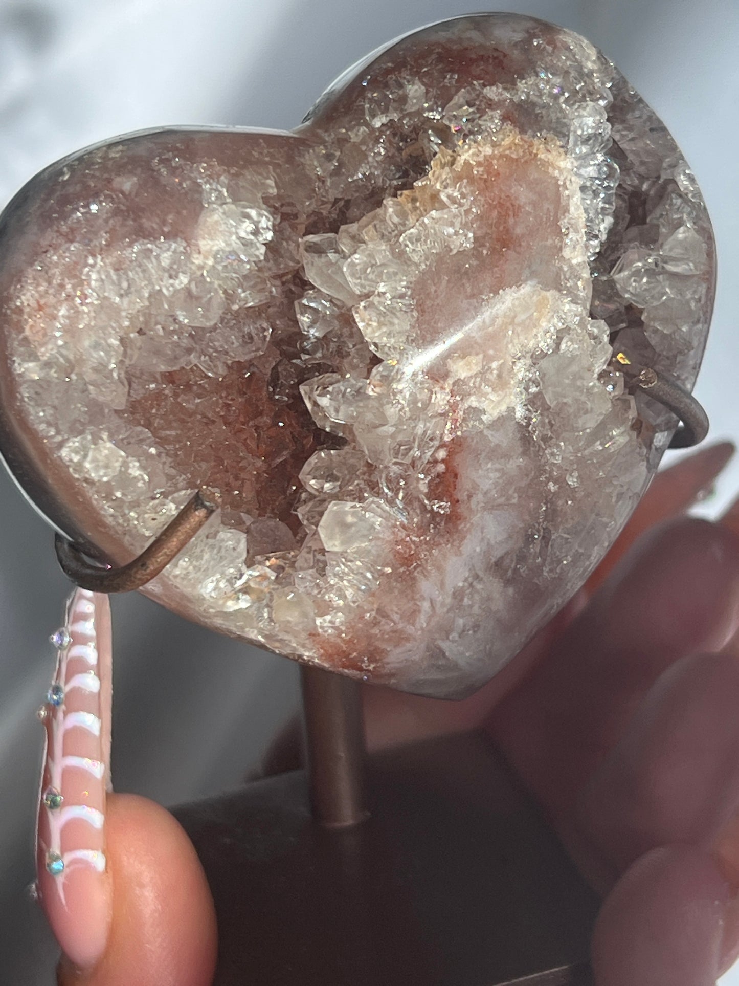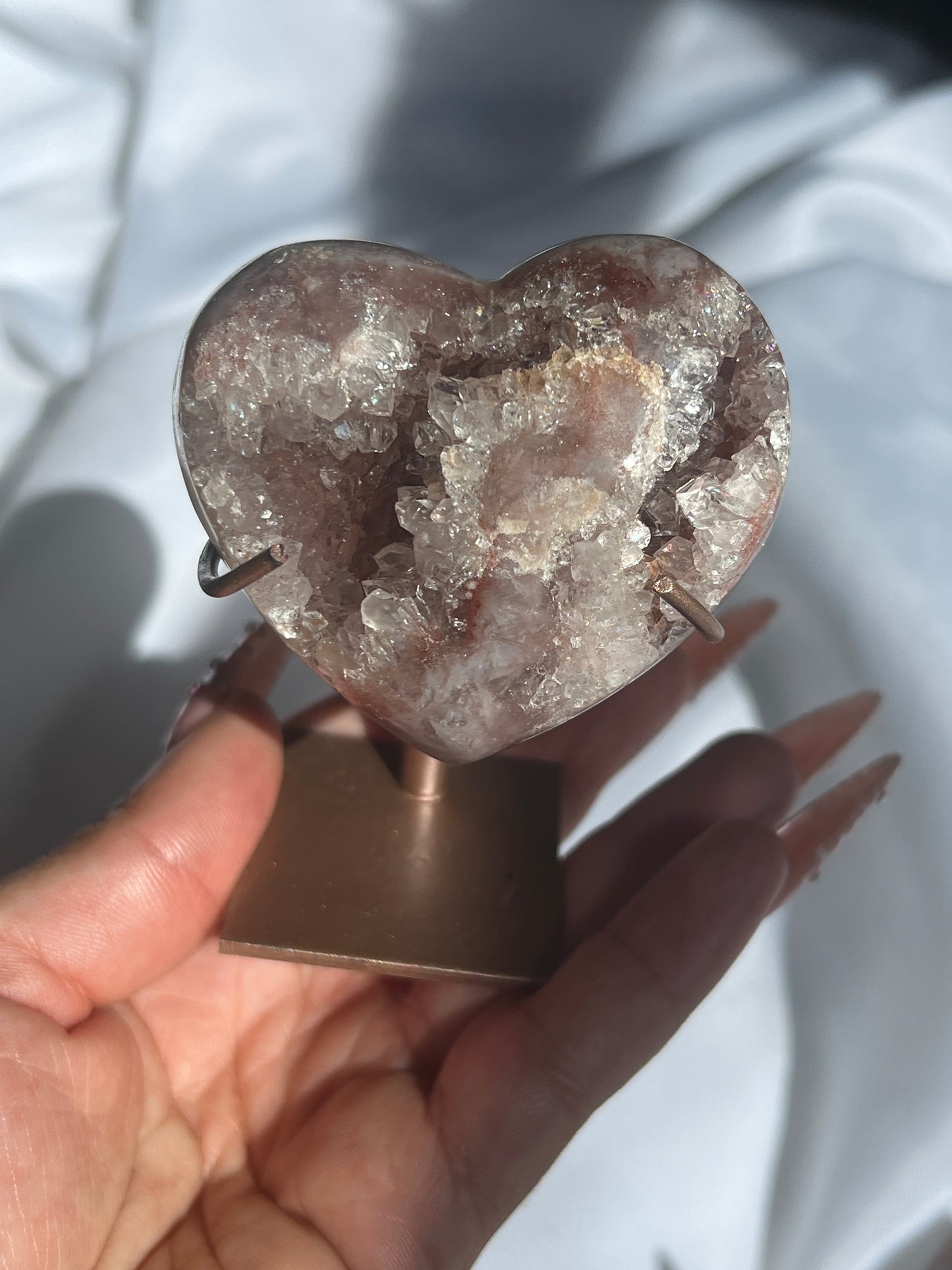 This stunning red-toned Pink Amethyst Heart is super druzy and full of lovely deep mauve and purple all around. Use Pink Amethyst to enhance your self-care routine, while protecting your peace and nurturing your self-esteem!