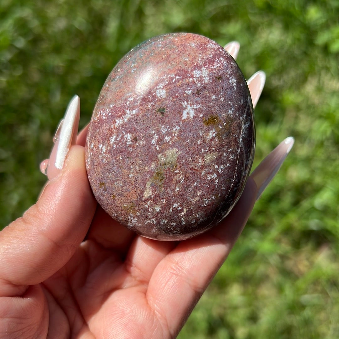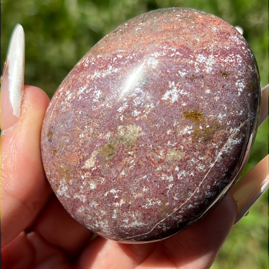 This unique deep pink Pastel Jasper palm stone is a beautiful piece to add to your collection, whether you’re looking to stay grounded, or add a little nurturing, calm energy into your routine!