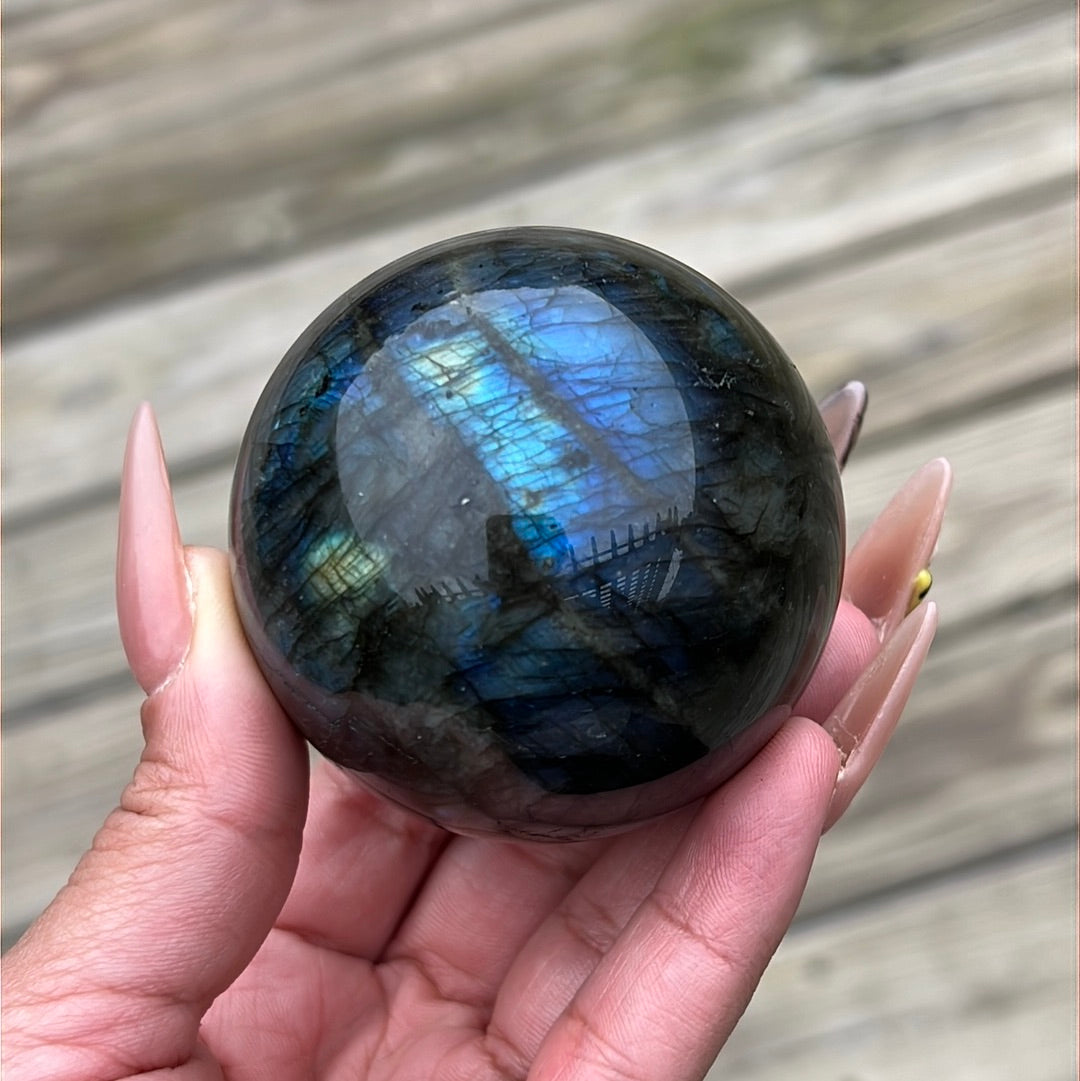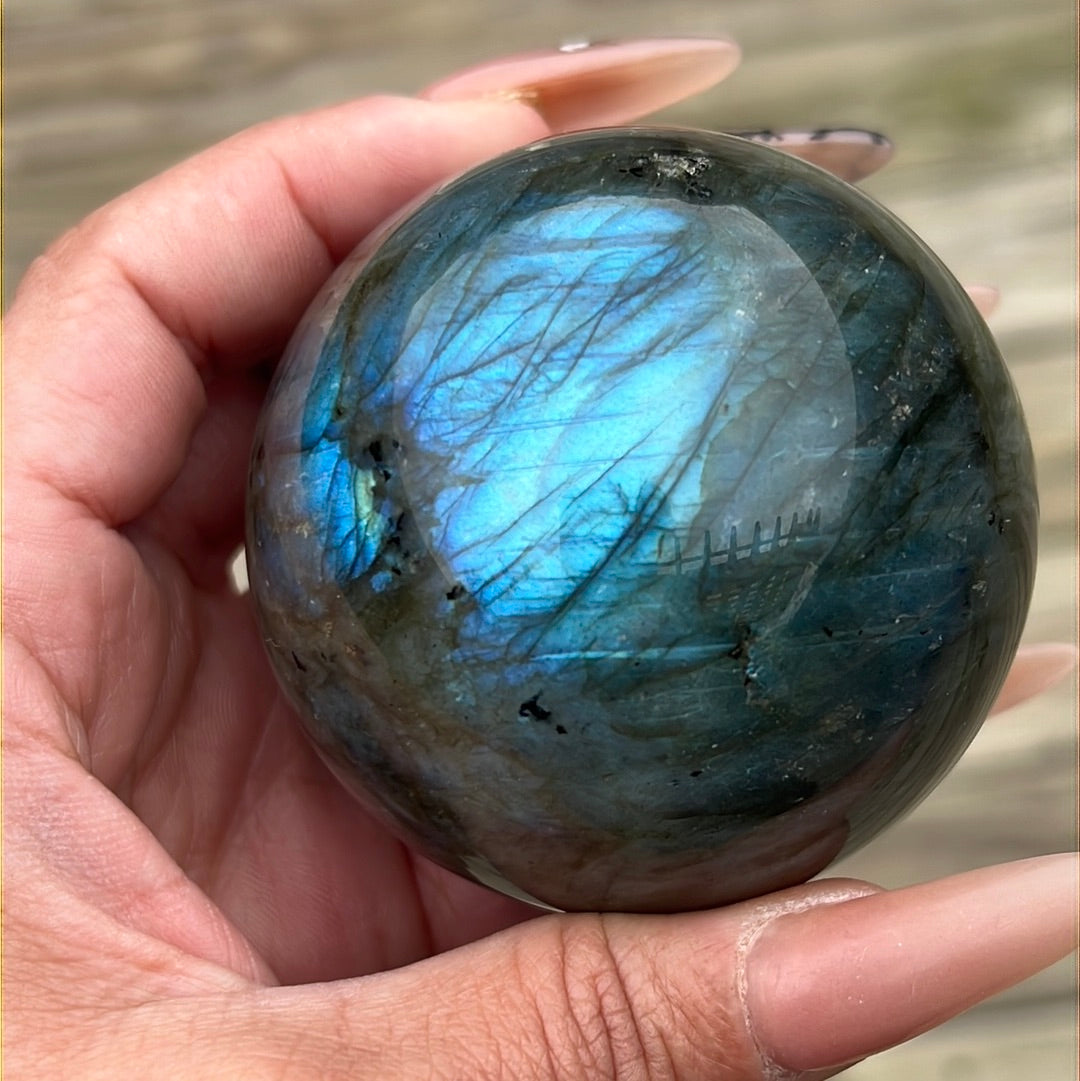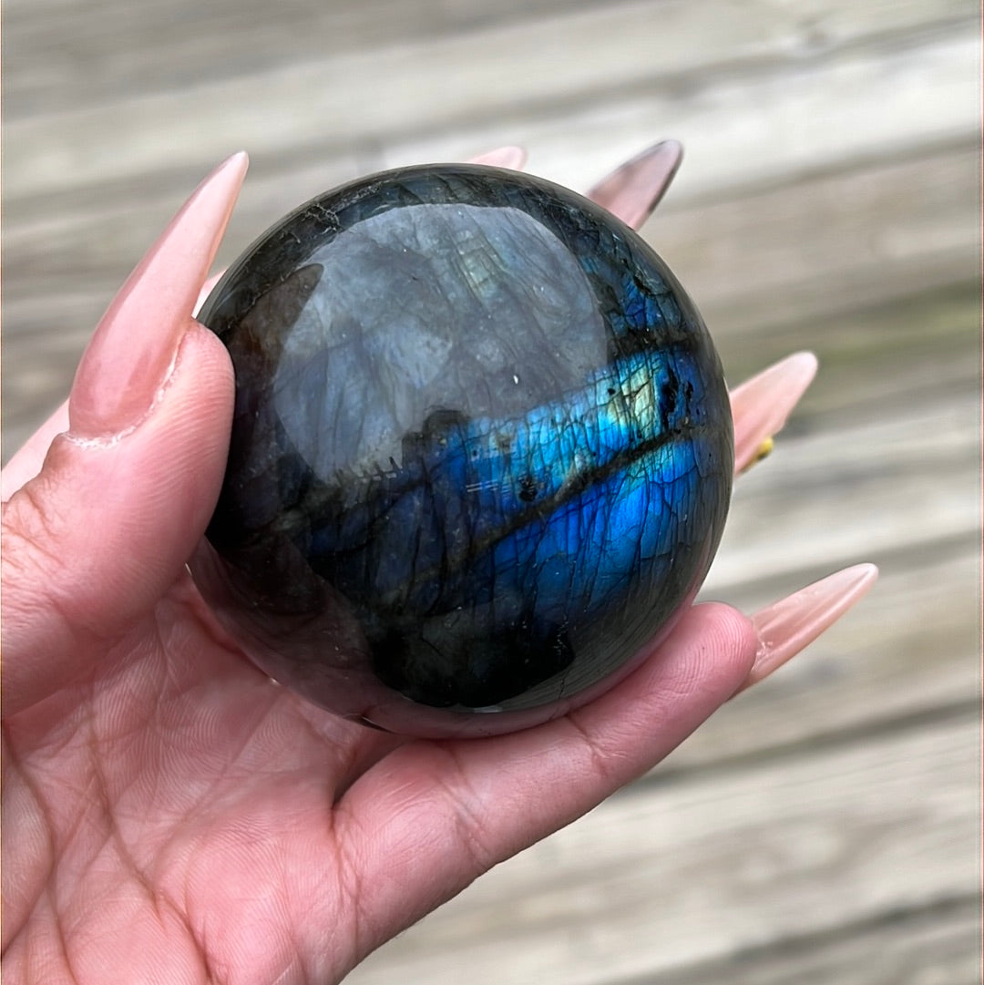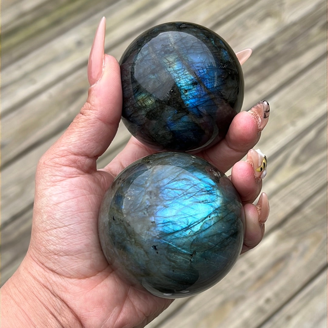 Stunning labradorite spheres with primarily blue flash! *Individually sold
