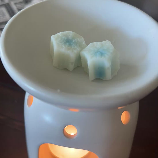 These super cute snowflake wax melts include a glittery blue core for fun and fresh scent-scaping! Combined with healing crystals, these melts enhance the particular energy and intentions the scent corresponds with!