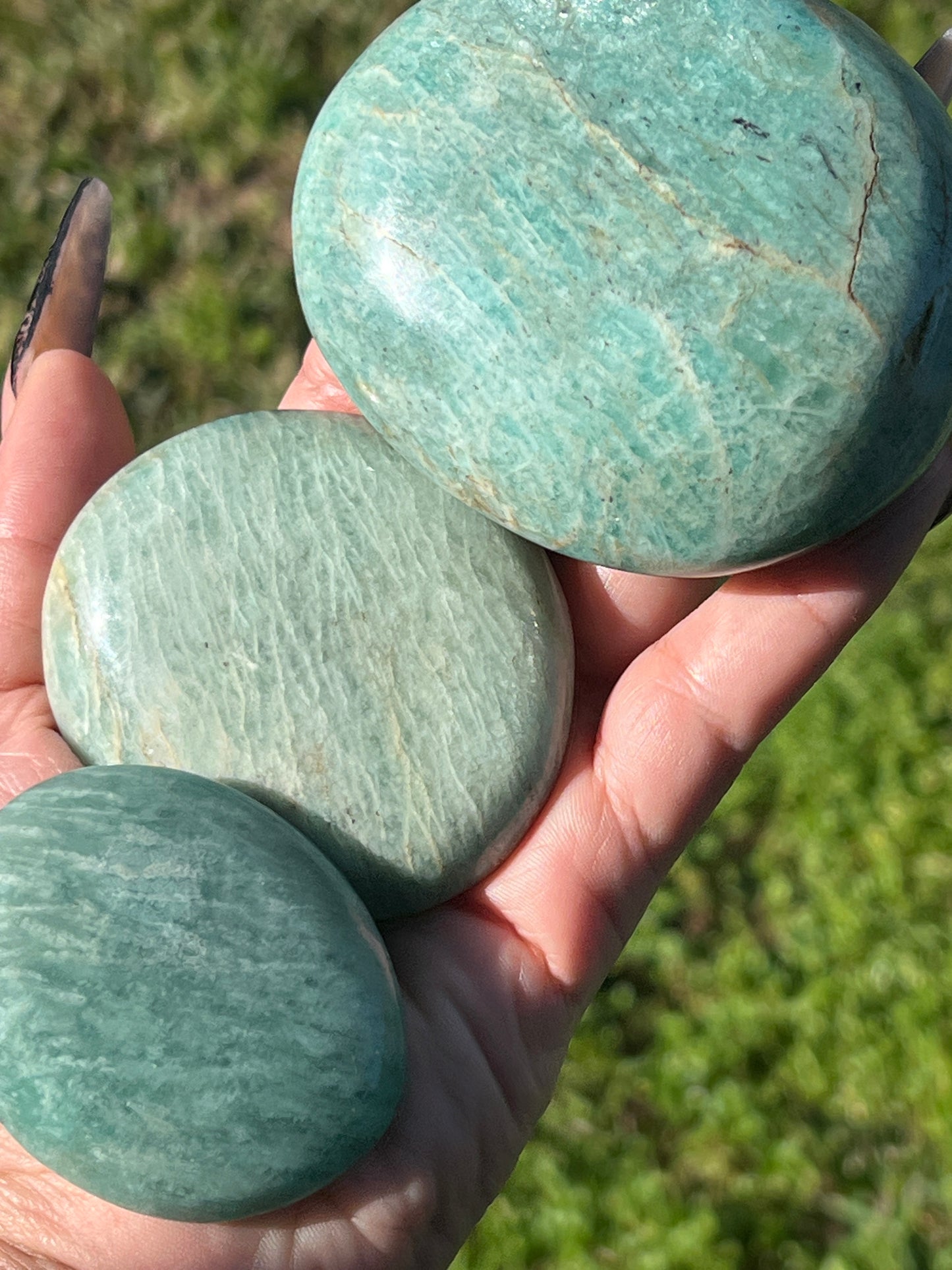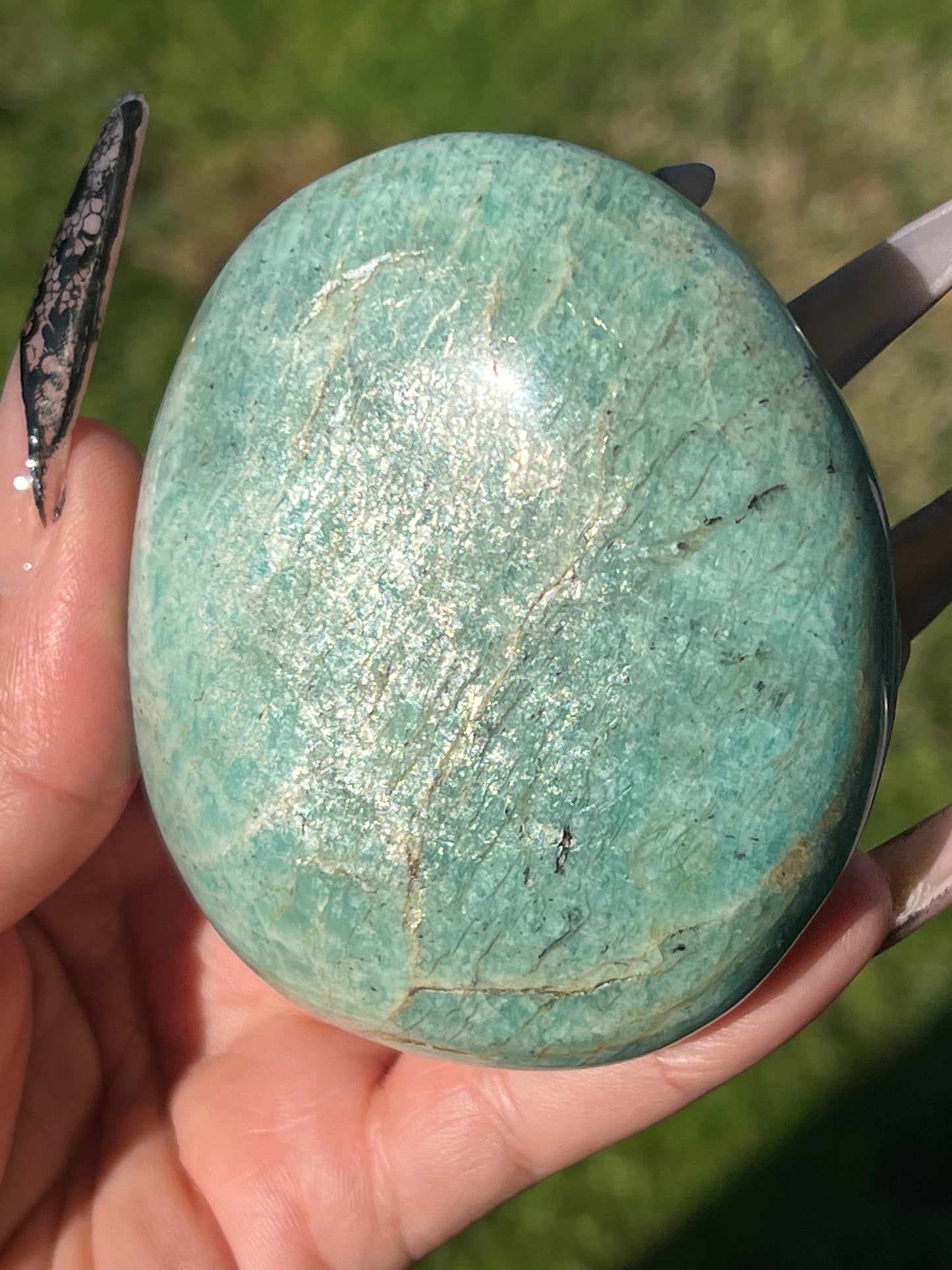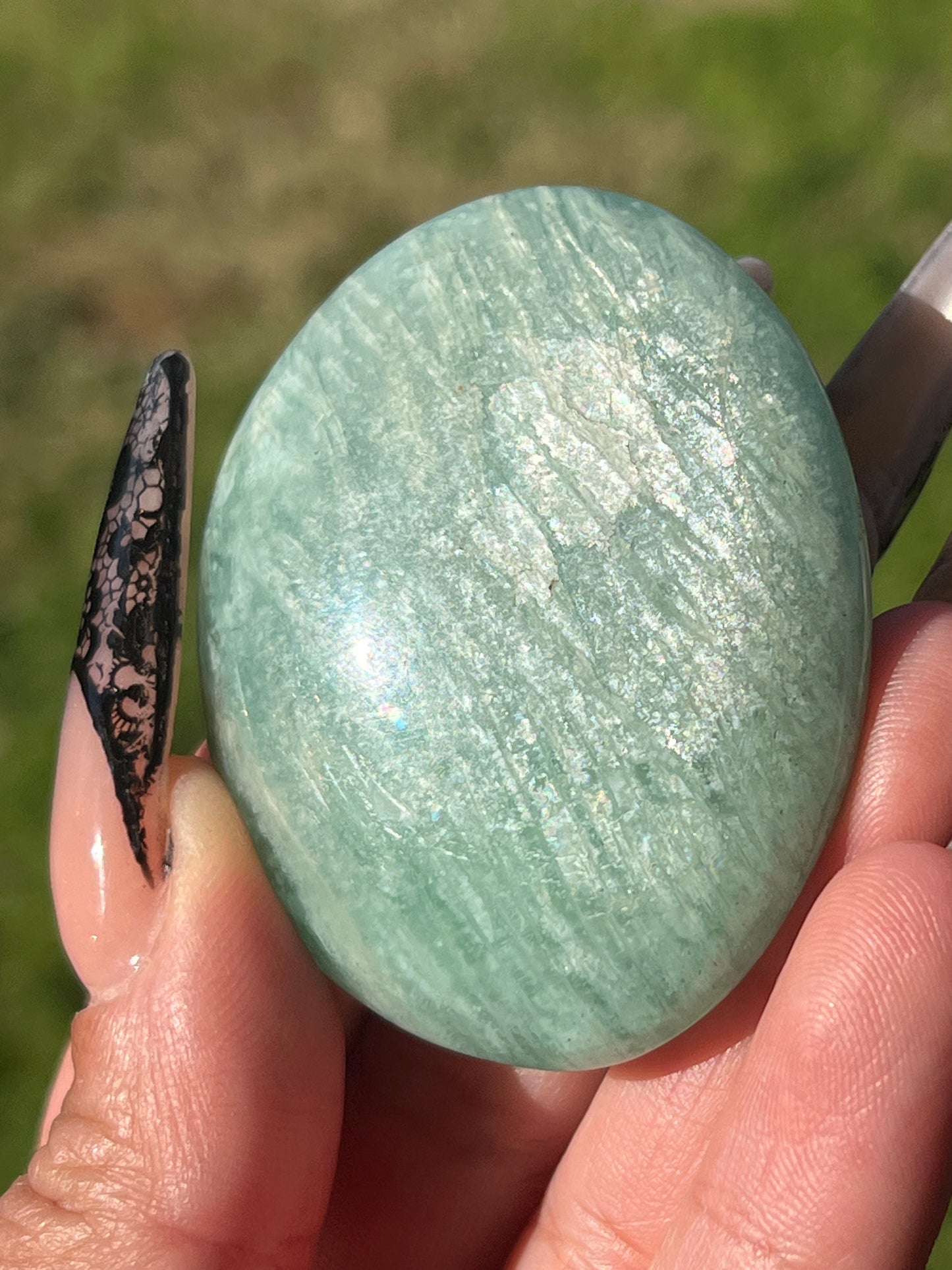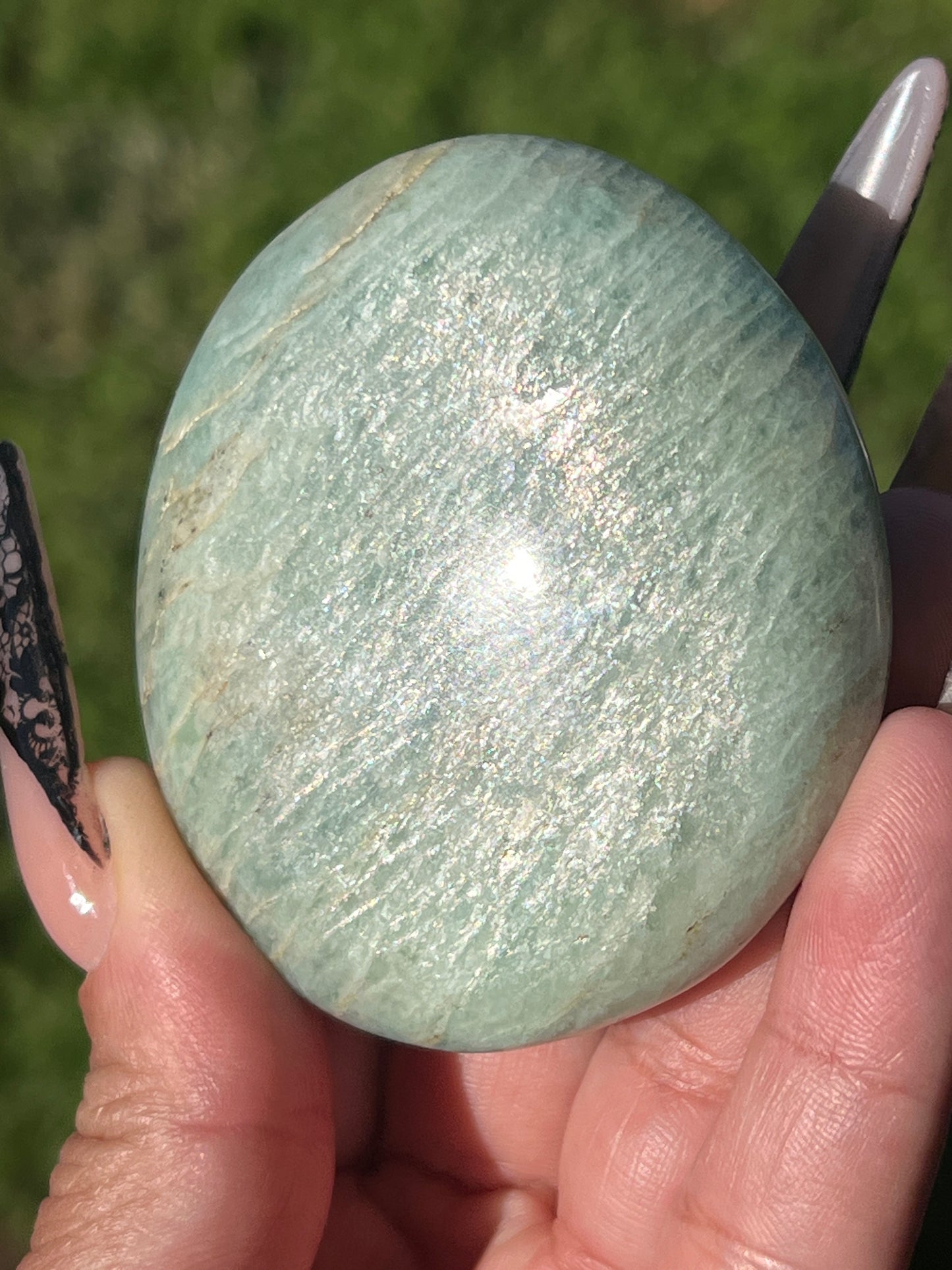 These amazing, chatoyant palm stones are excellent to use during your calming meditation or even to have close to you for an added boost of calm, clarity, and prosperity.