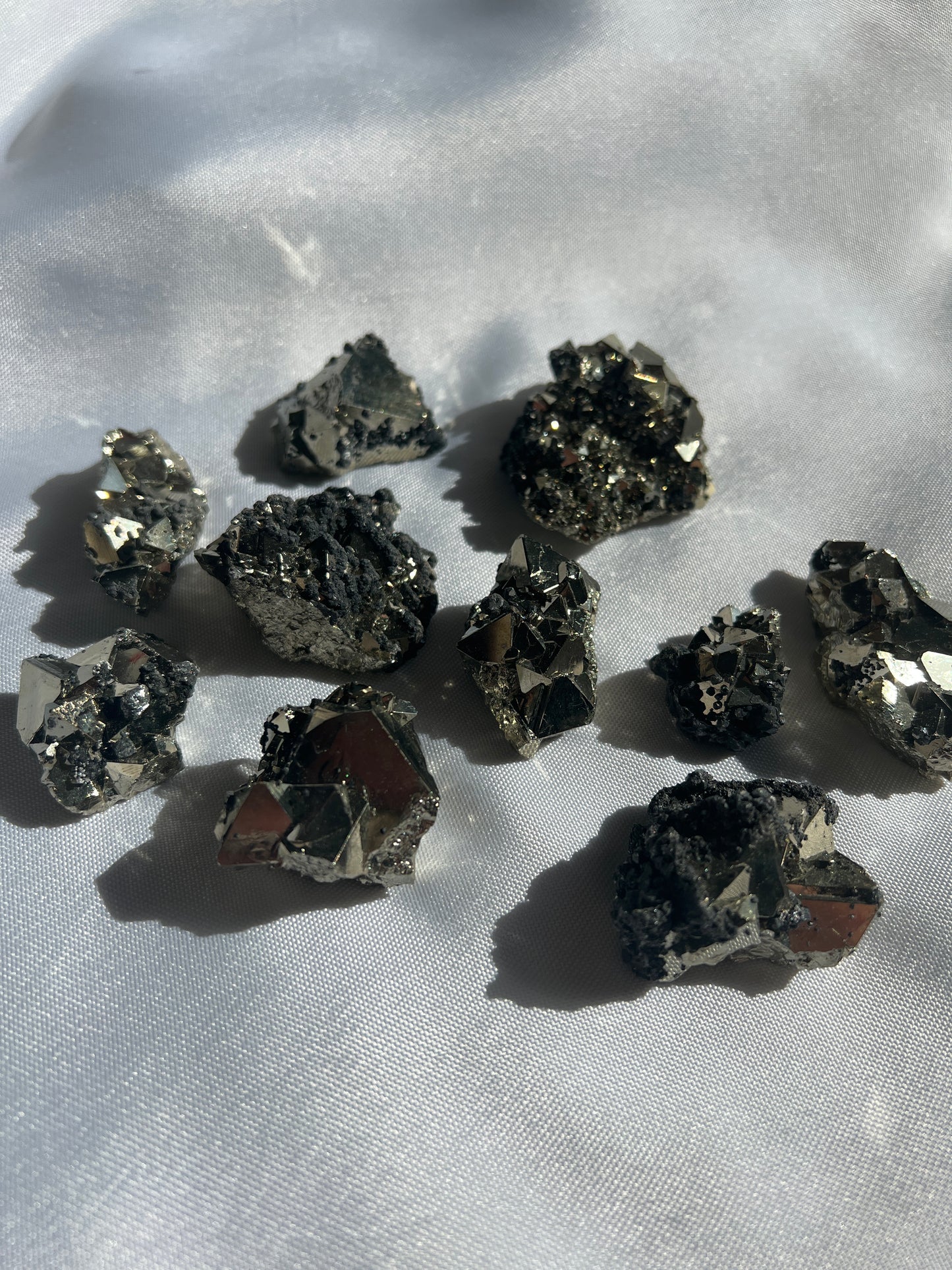 “Golden Glow” Peruvian Octahedral Pyrite Clusters