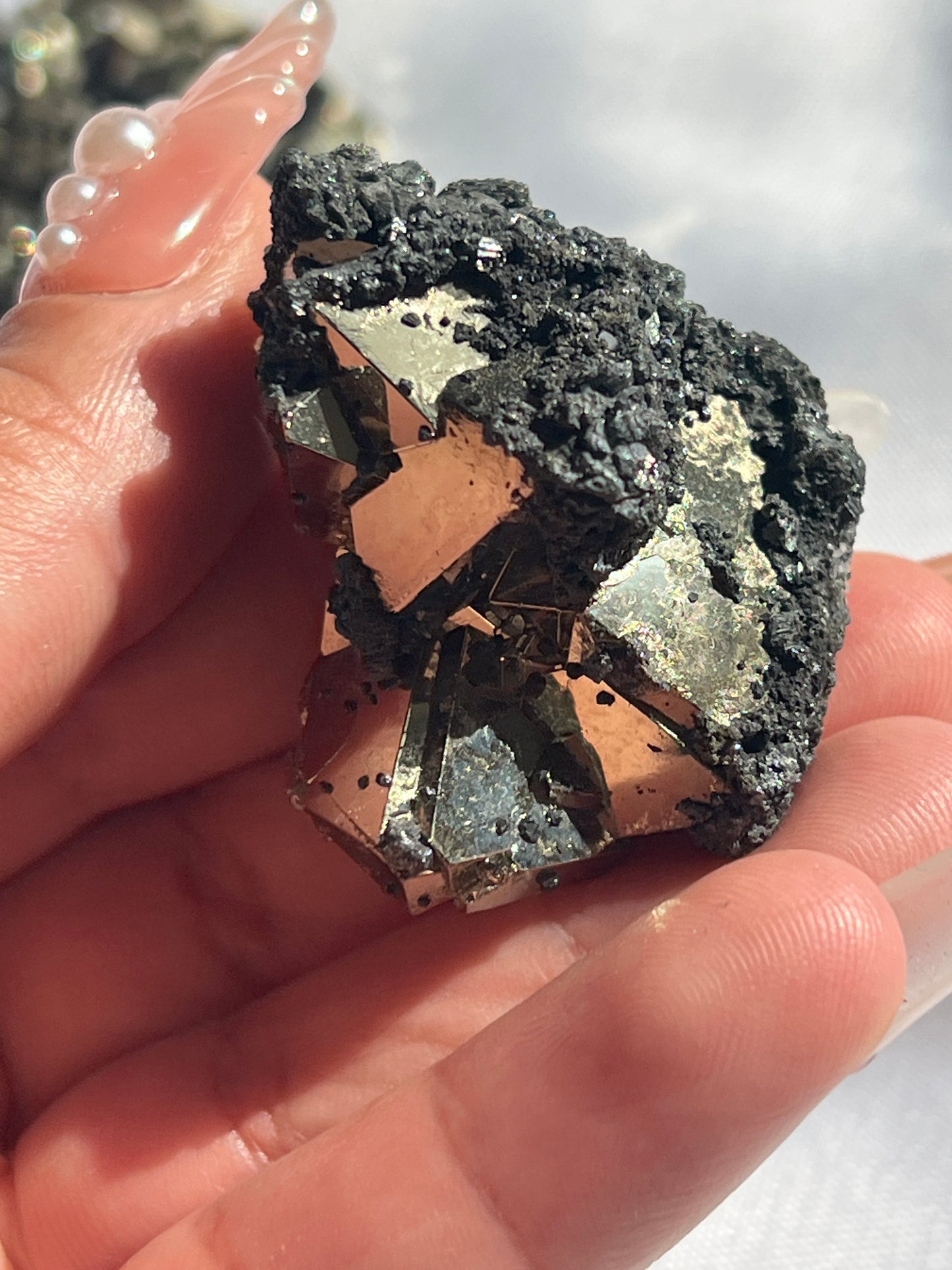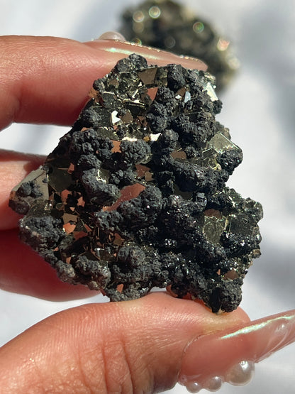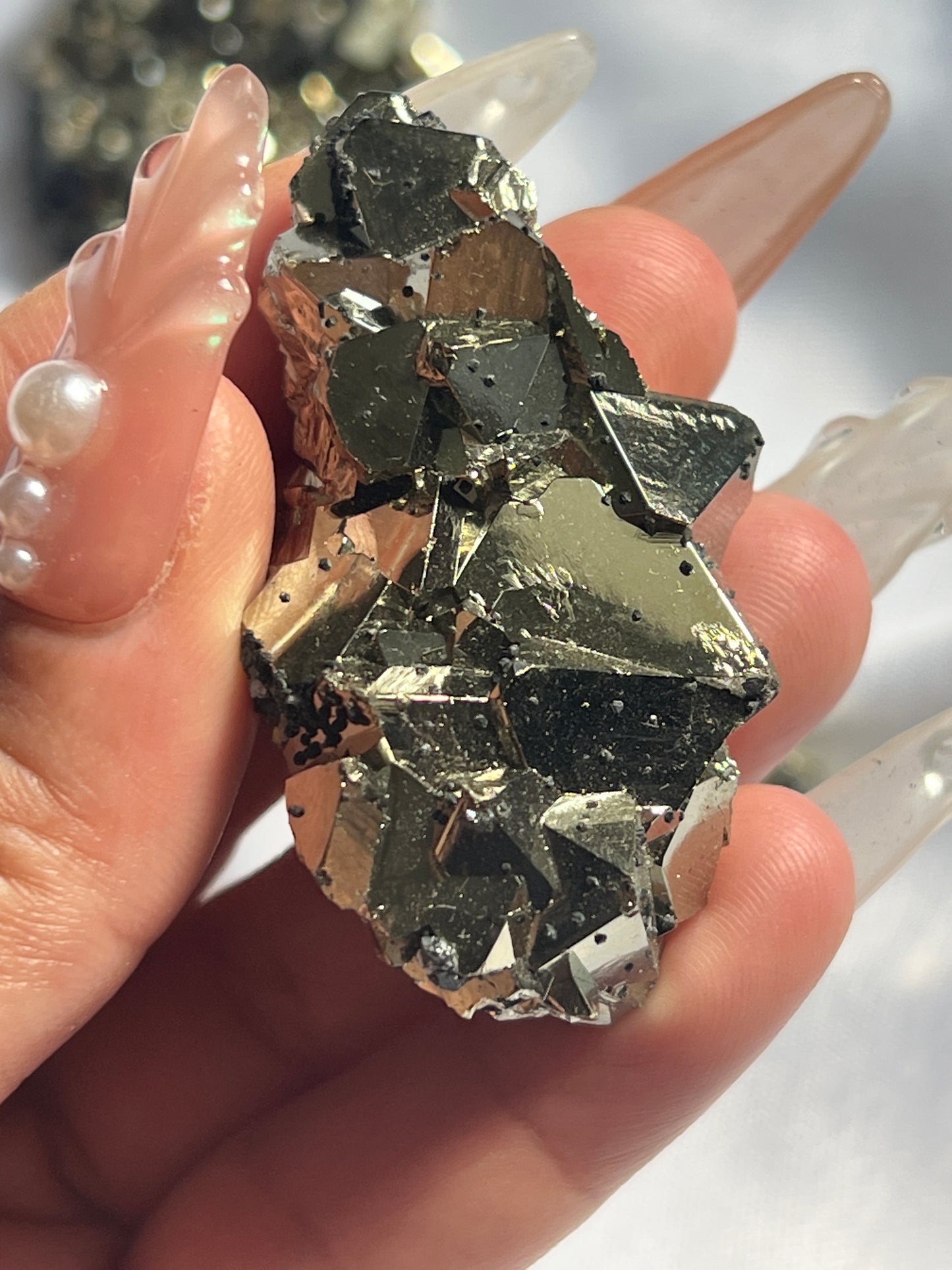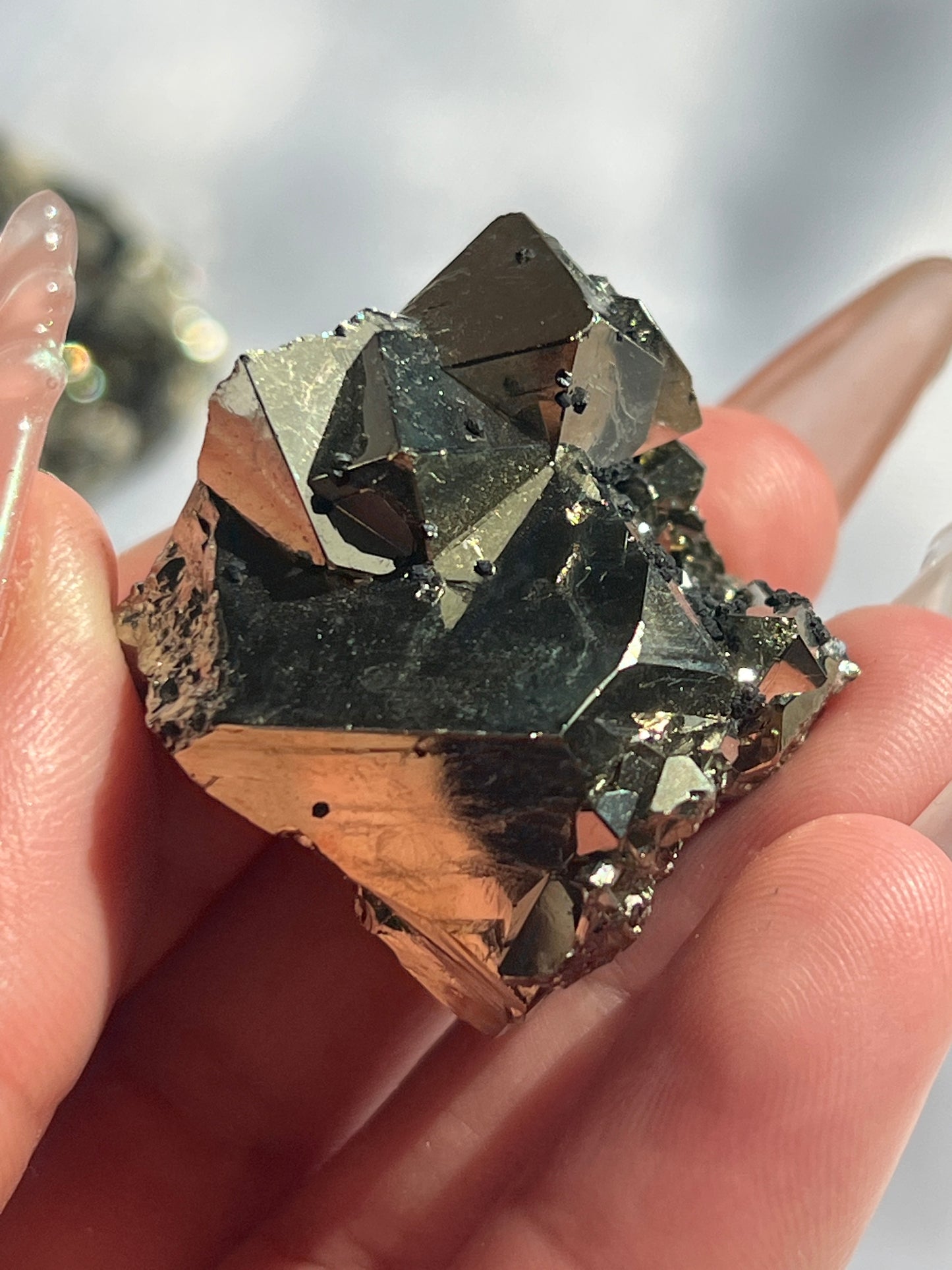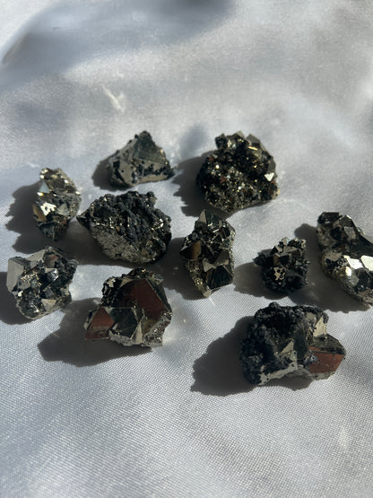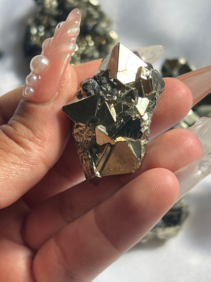 These absolutely incredible Peruvian Pyrite clusters have unique octahedral formations, giving these an out of this world look! If you’re seeking success and wealth, Pyrite is a wonderful crystal to aid you in your intentions.