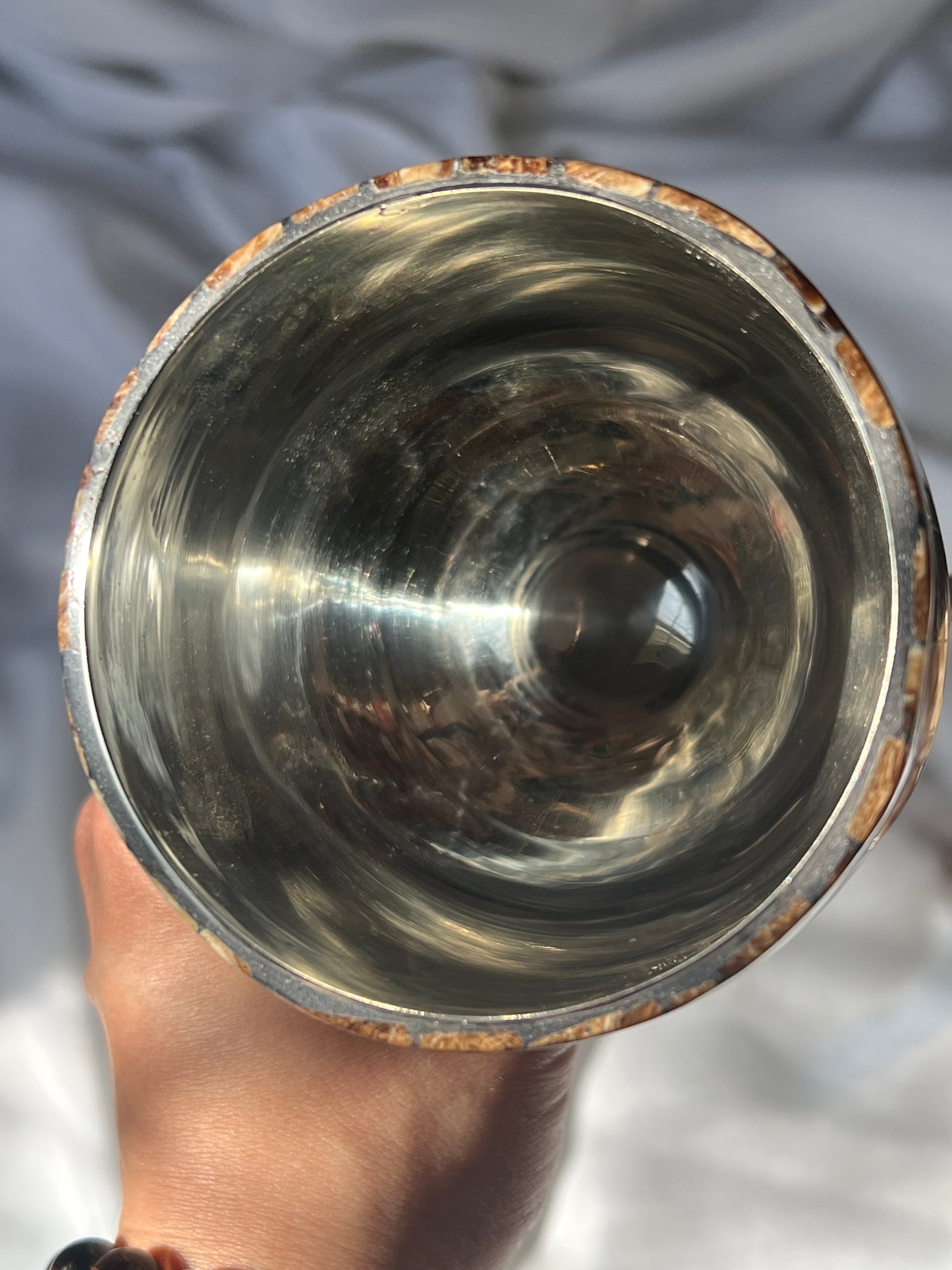 These stunning and unique mosaic-style goblets are handmade and constructed using individually cut and polished Chocolate Calcite tiles, which have been carefully glued onto a stainless steel base with a strong adhesive! ***These cups are drink-safe!***