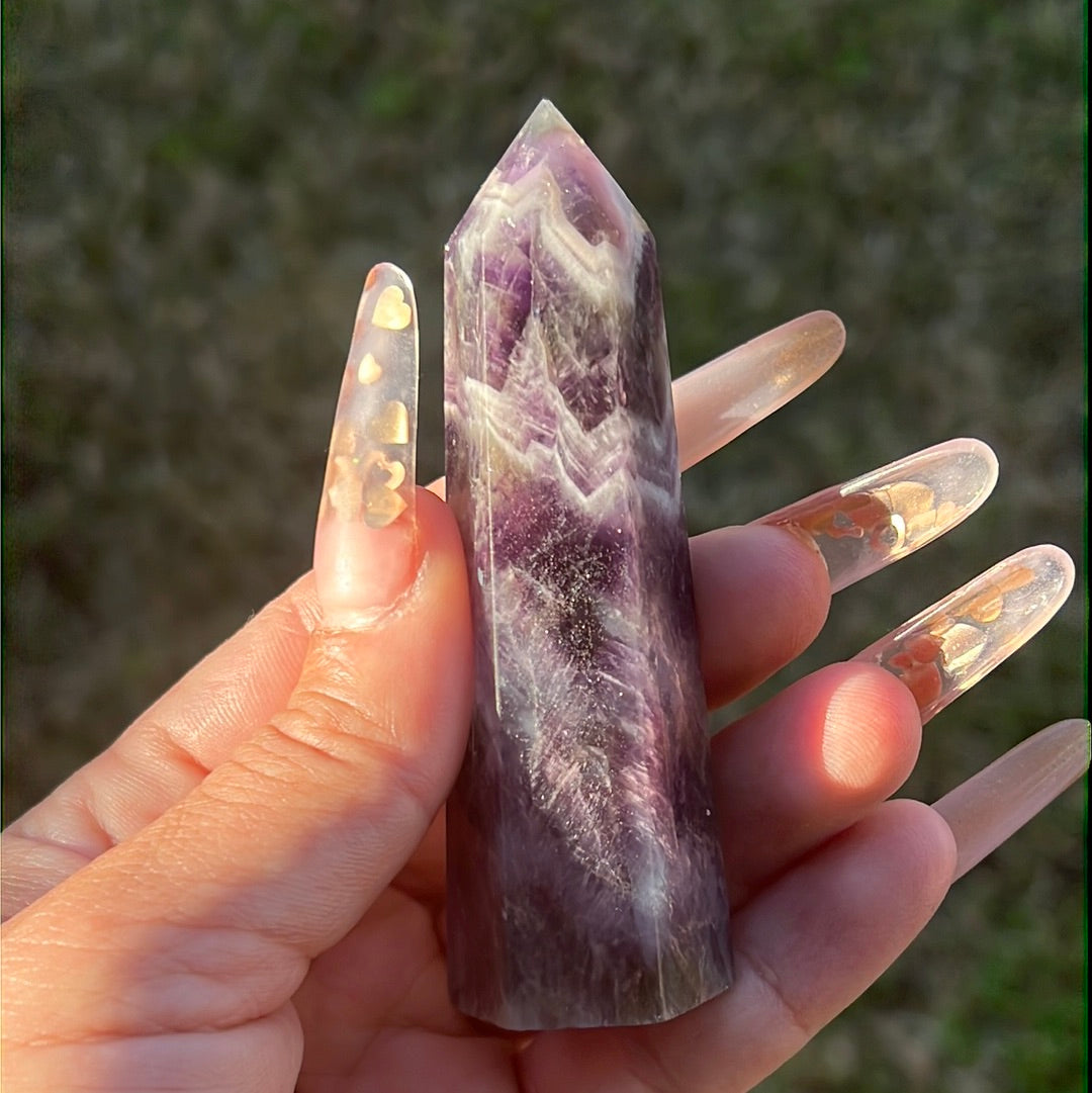 Beautiful banding blends with amethyst reminiscent of grape jam!