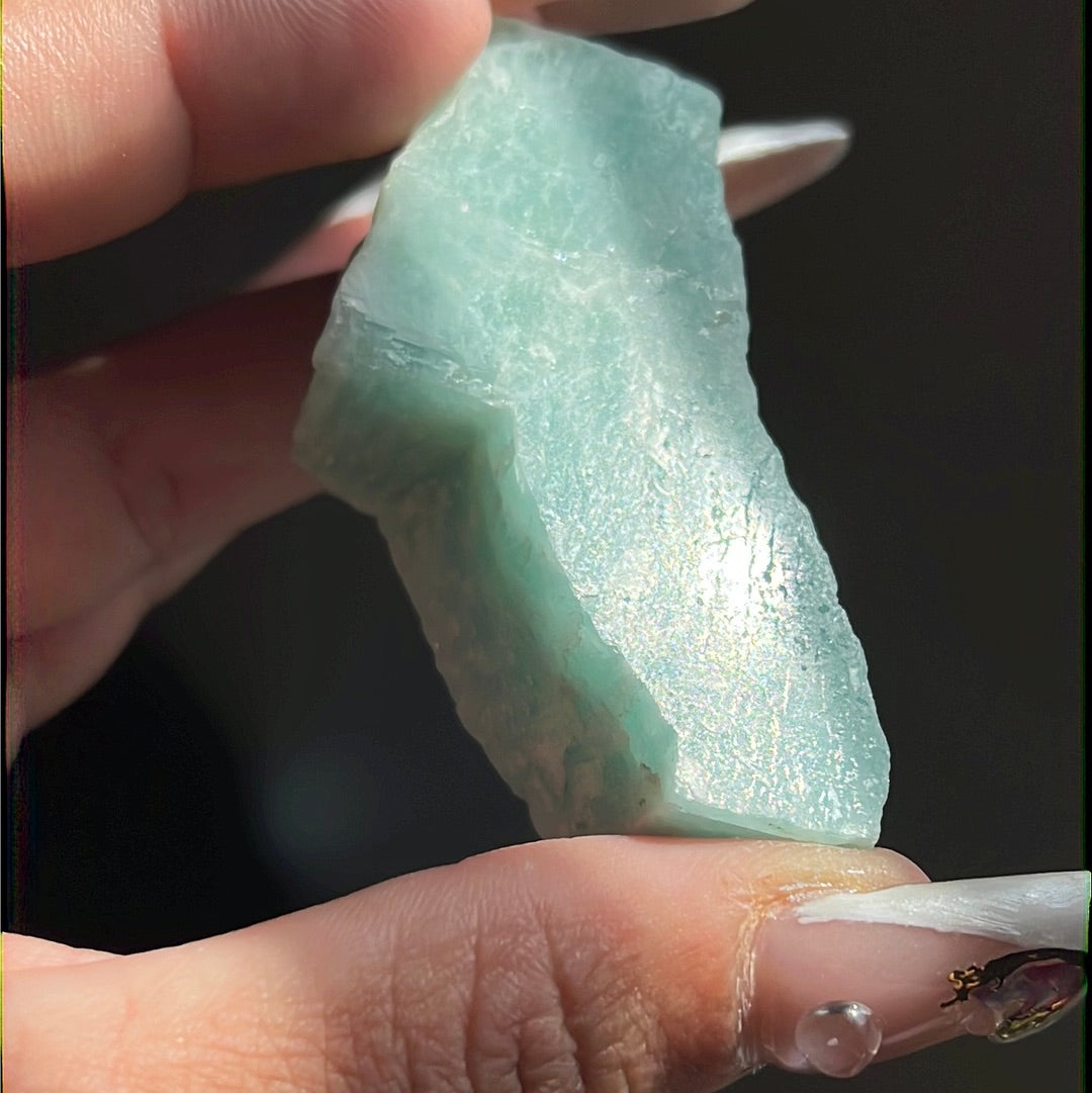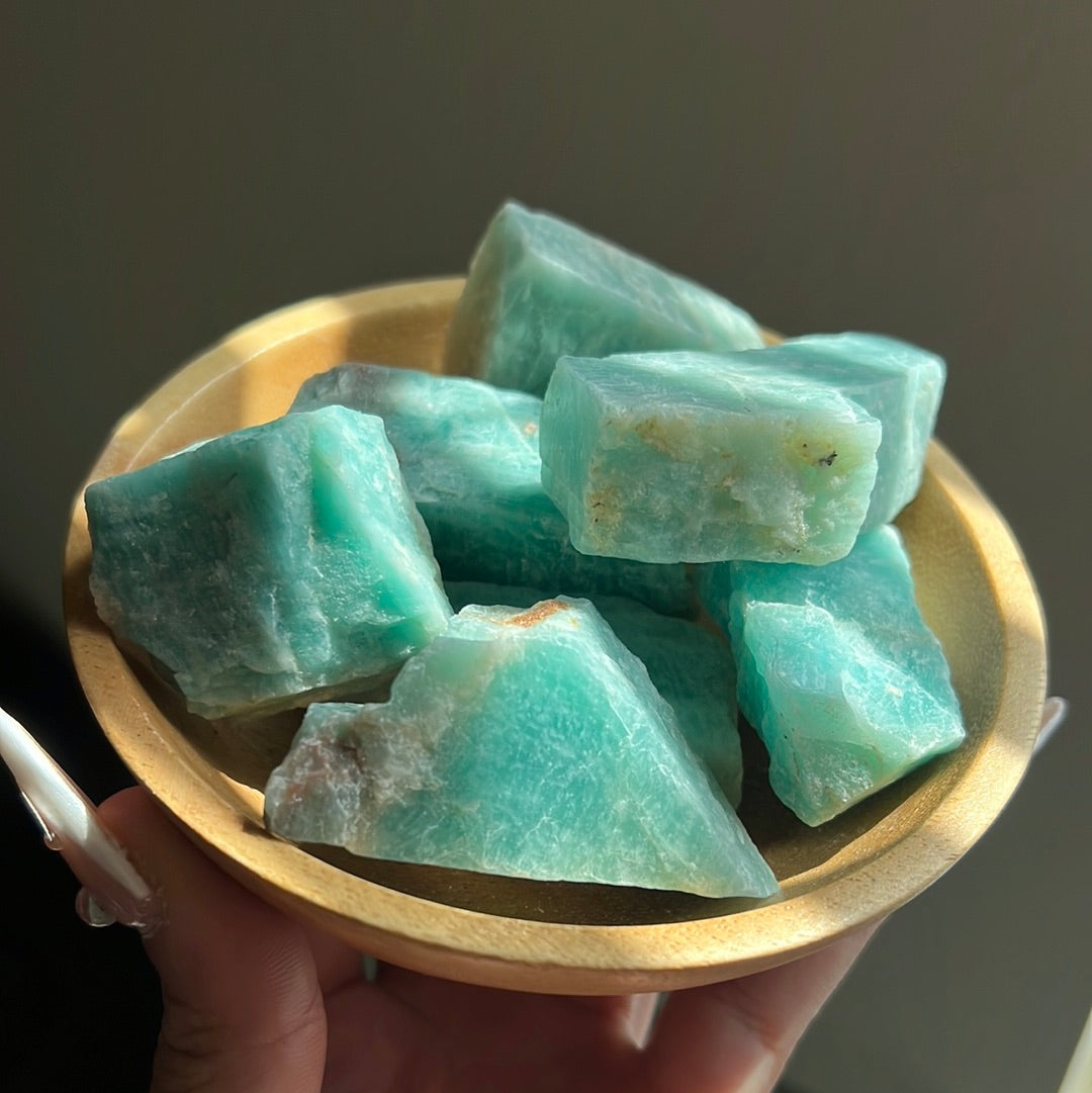 Bright, chatoyant Amazonite chunks make for great pocket stones, meditation buddies, or energy workers!