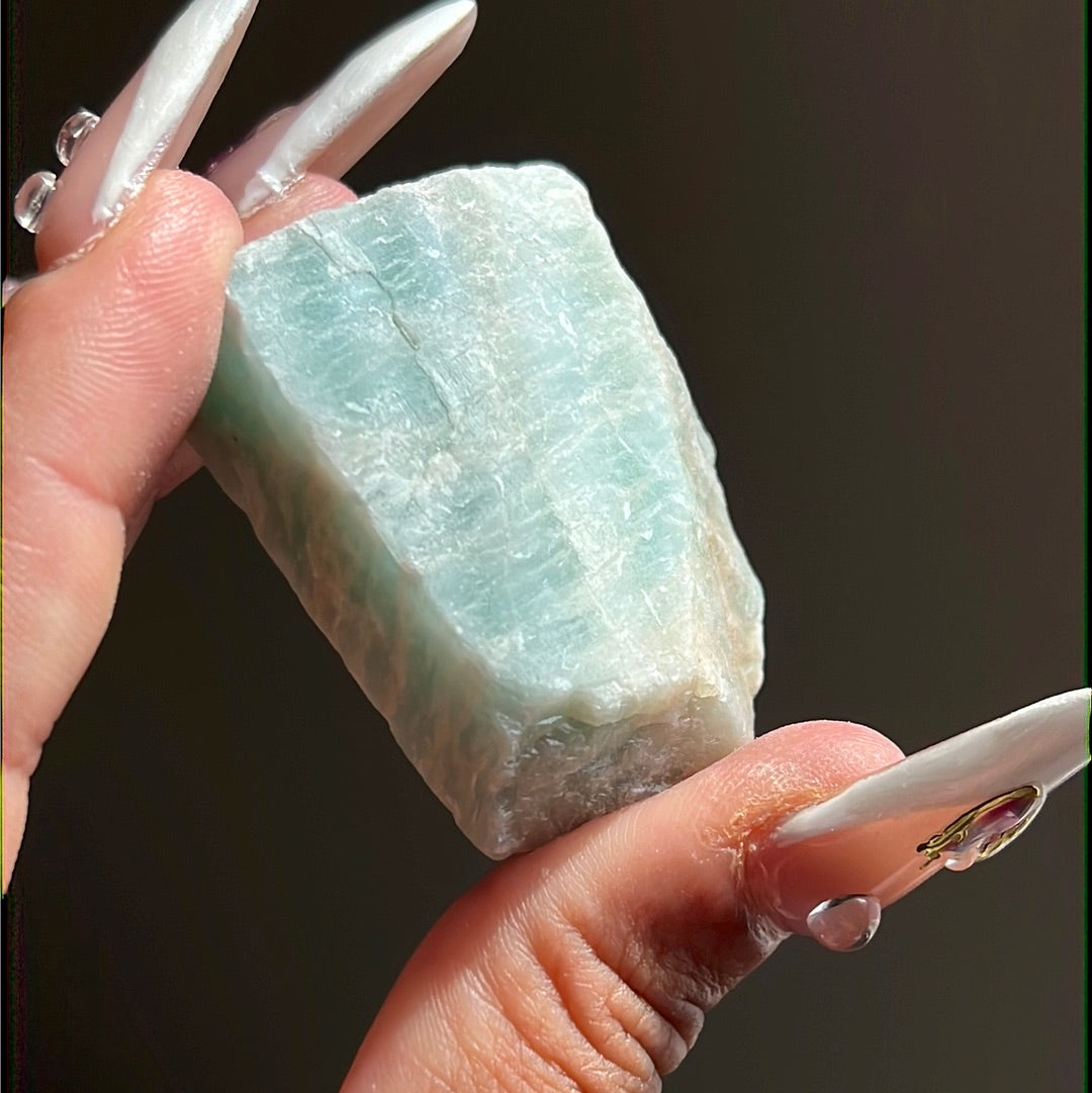 Amazonite is associated with clarity, communication, and relaxation. When you think of Amazonite, imagine the bright, clear tropical waves on a sunny beach, crashing softly on the shore!