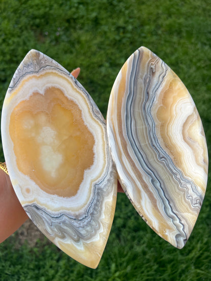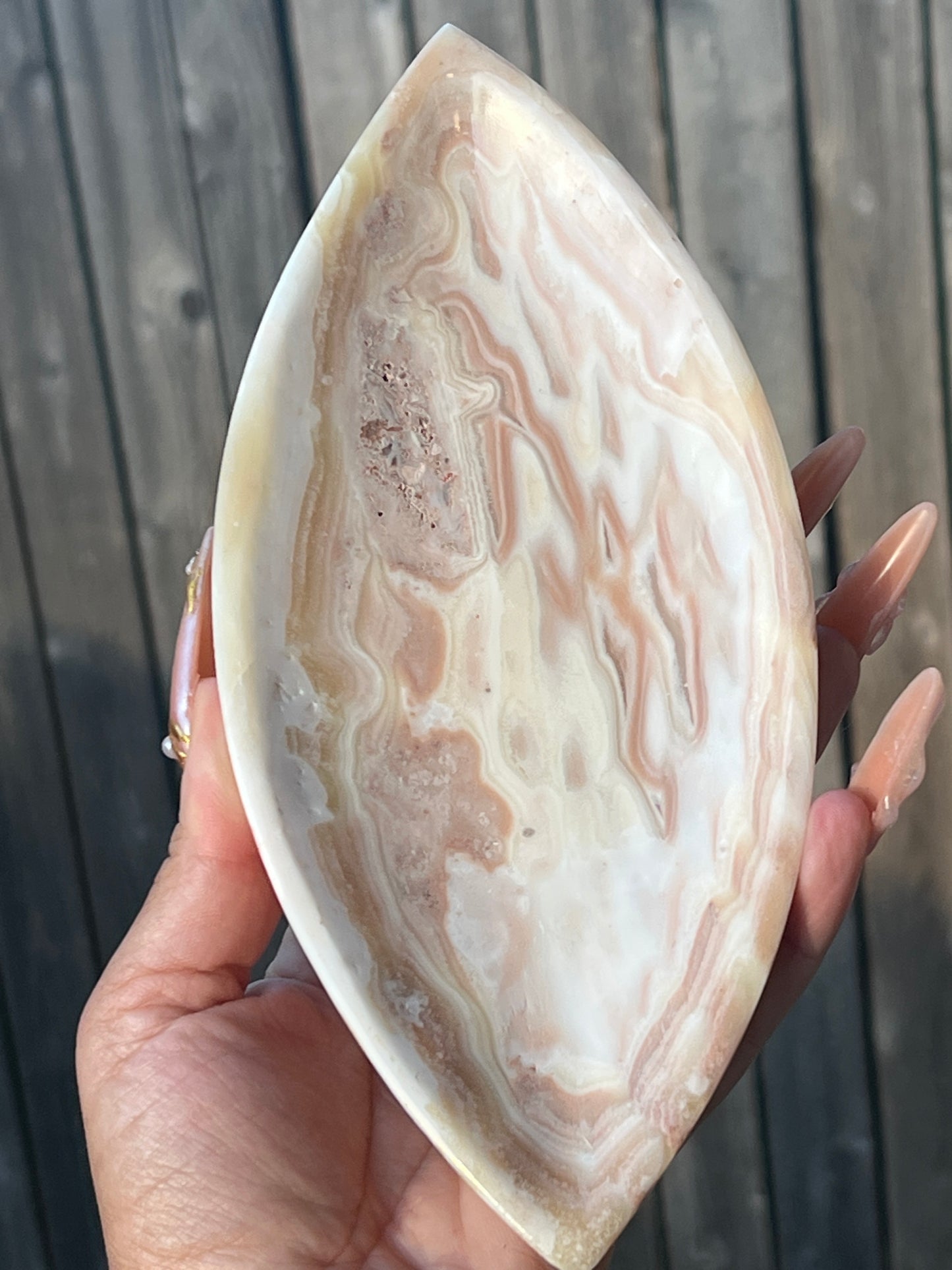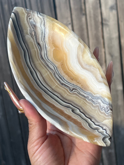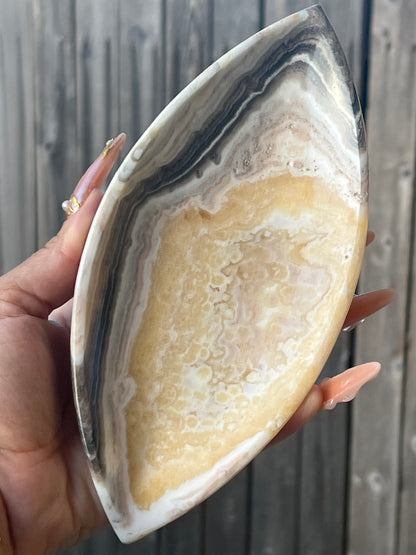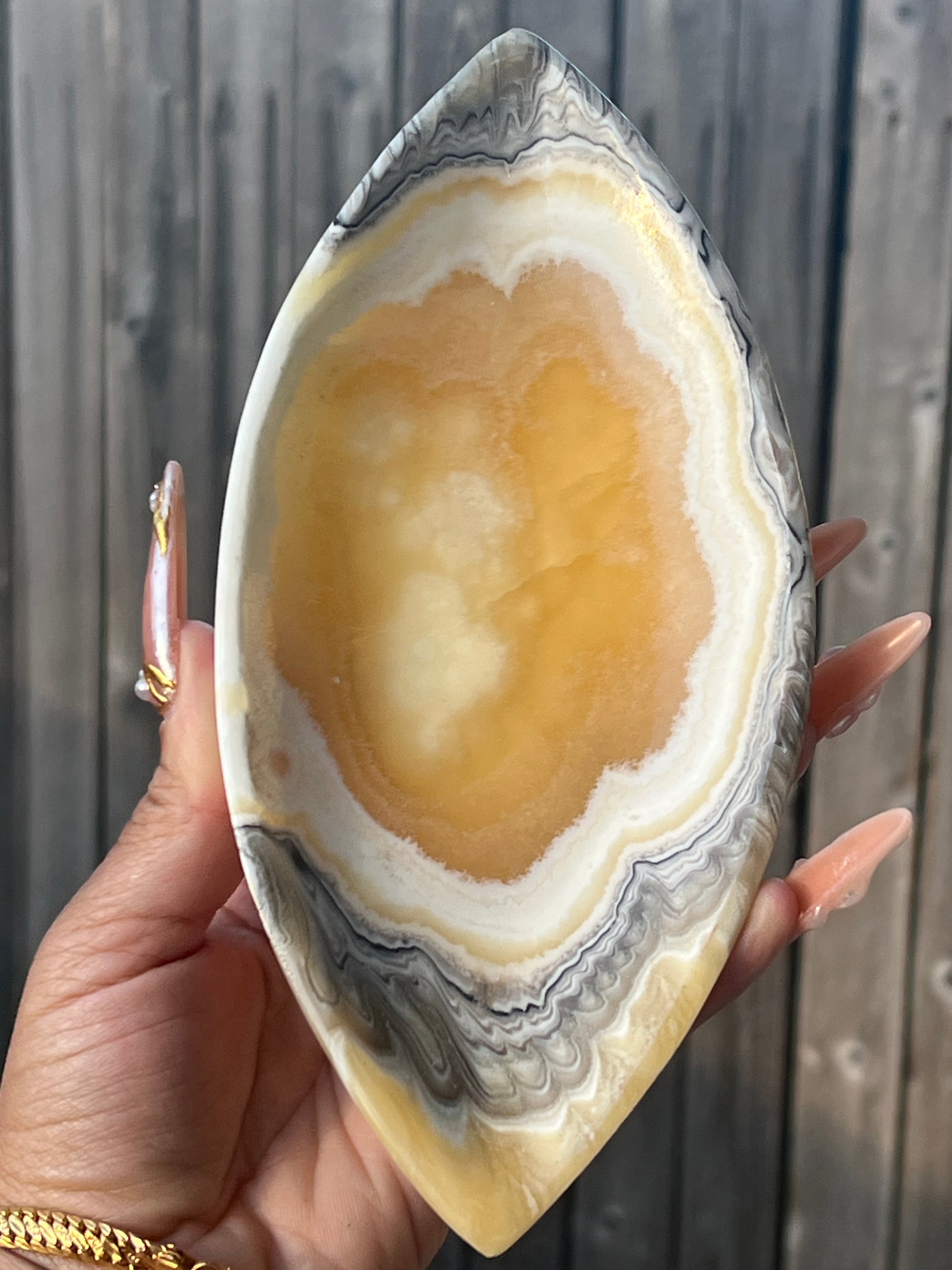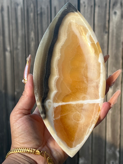 These gorgeous juicy Mango/Orange Calcite and Onyx Bowls are wonderful for storing your magical trinkets and jewelry! Bright calcite adds a refreshing, energizing vibe, while Onyx encourages strength and grounding. *These beauties are individually sold.*