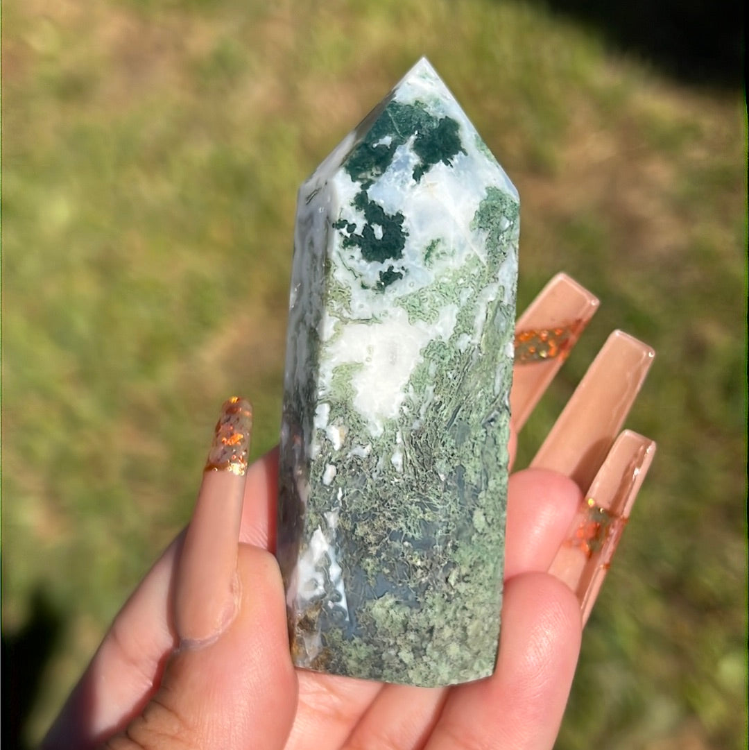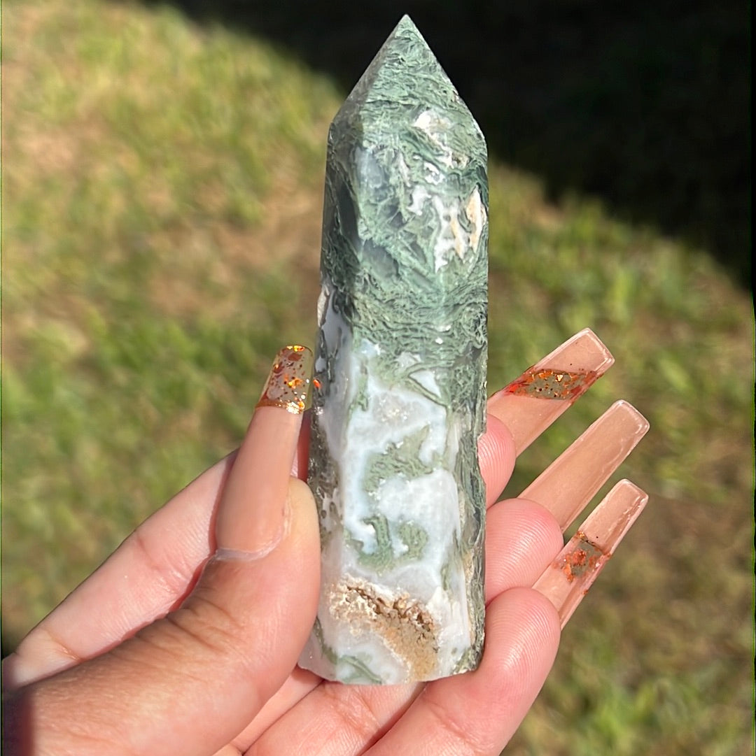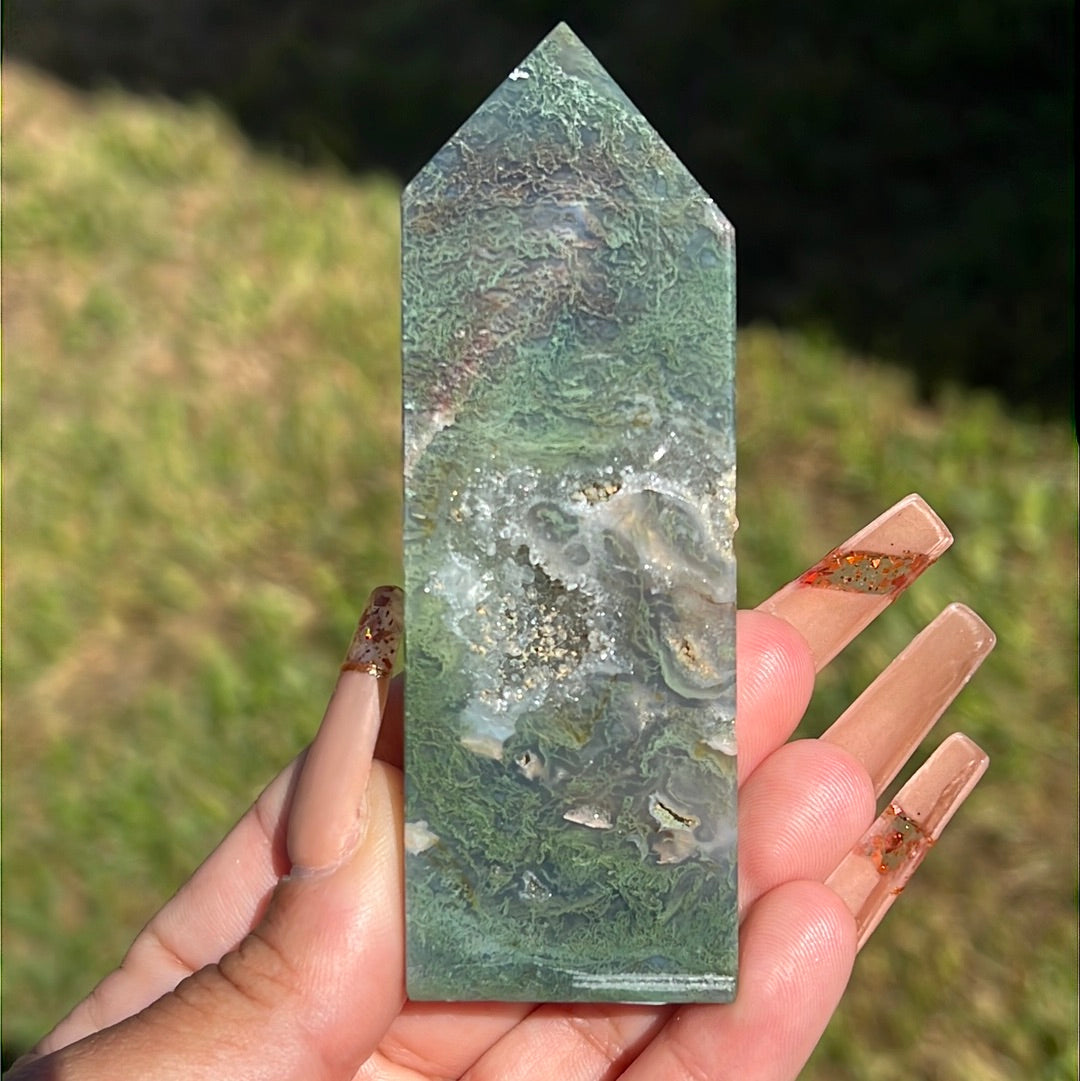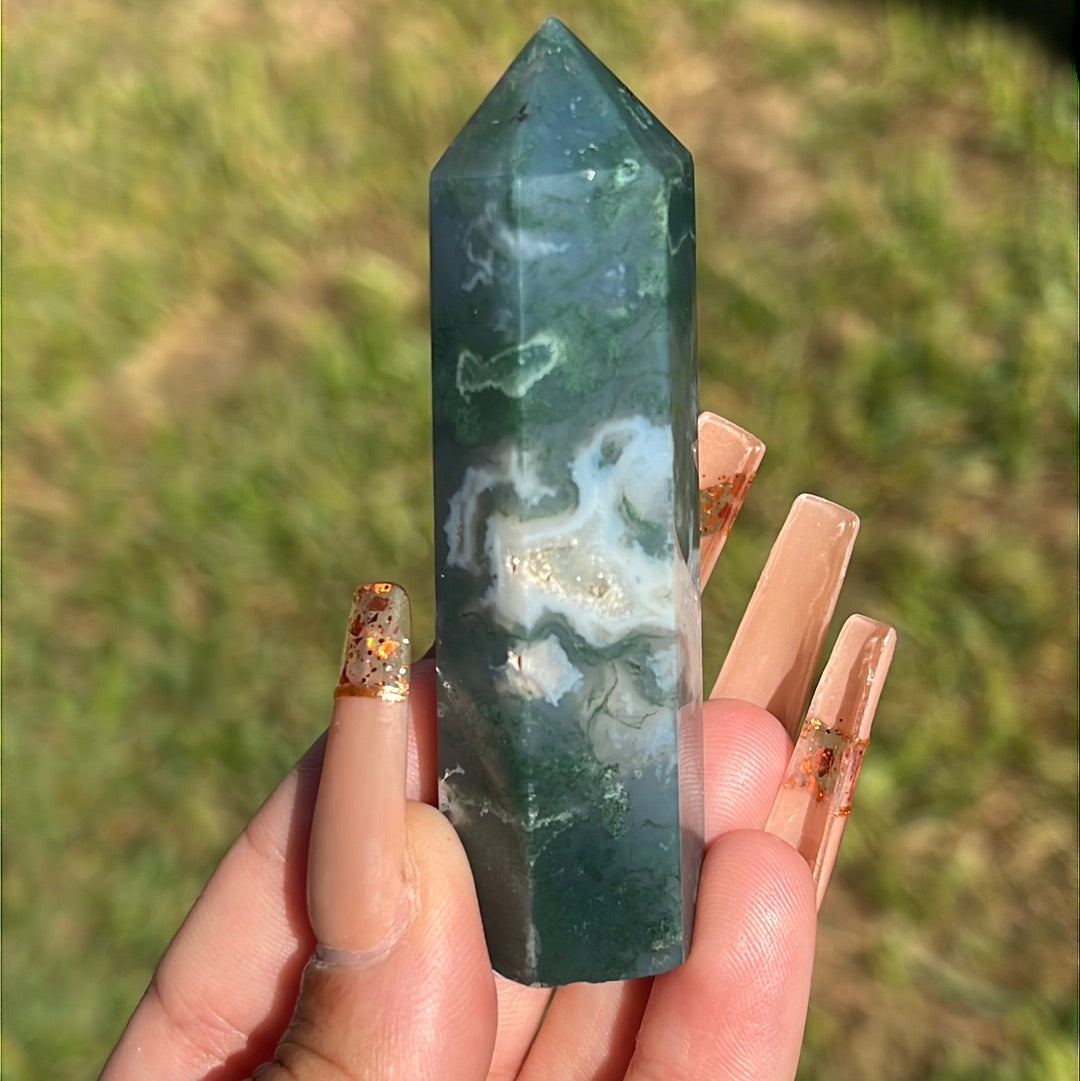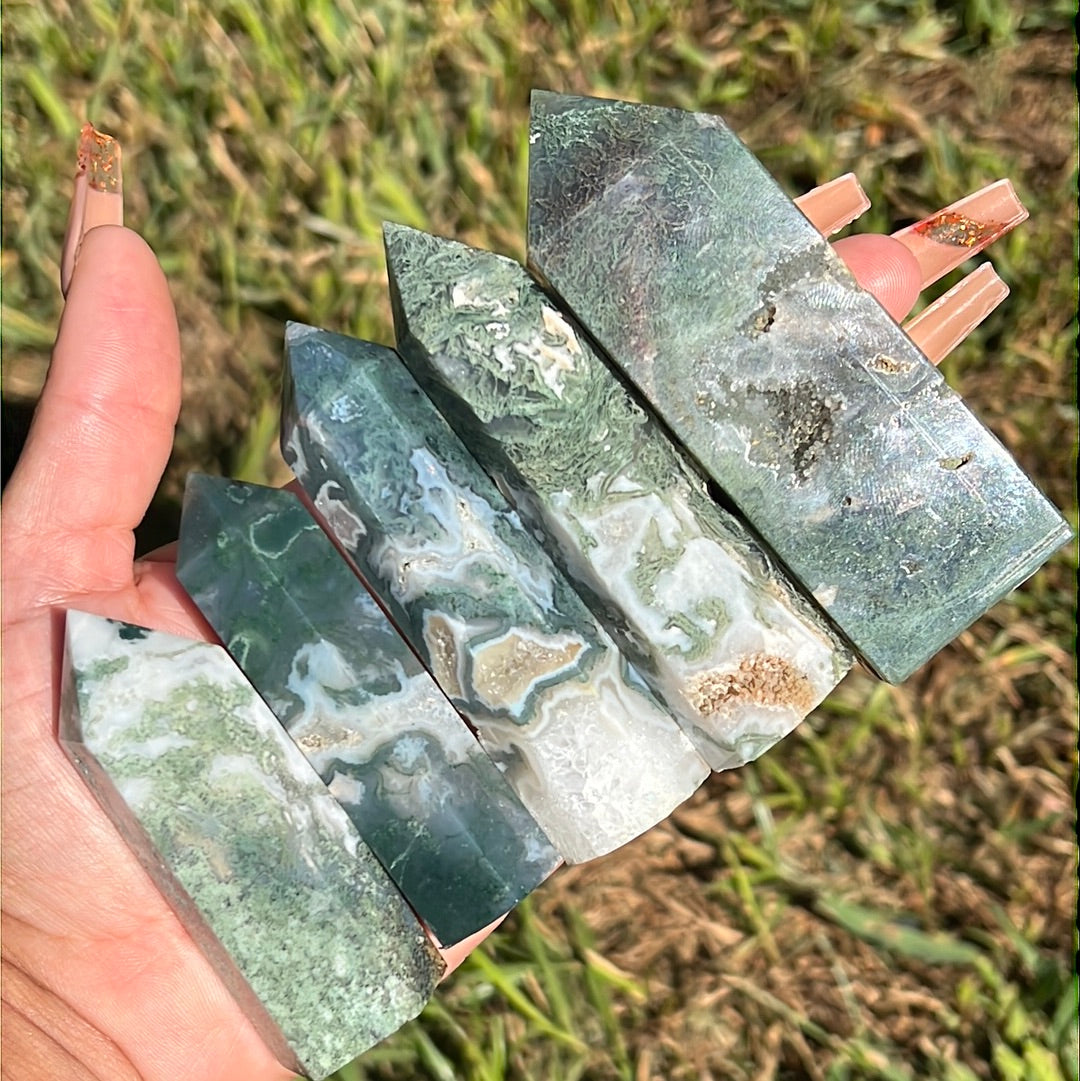 Small but mighty Moss Agate points with unique colors and banding! *Individually sold