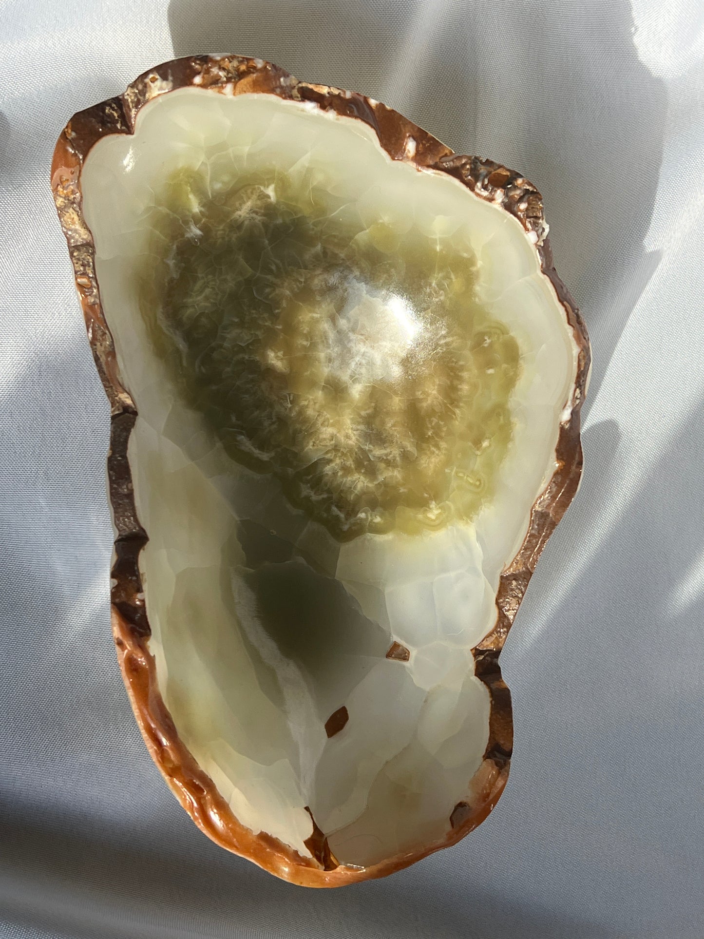 Elevate your space with our stunning large-sized Green Onyx Bowl, a true testament to natural beauty and craftsmanship. Each hand-carved bowl showcases the captivating translucent olivine hues and unique veining inherent to genuine Green Onyx. Perfect as a decorative centerpiece, crystal holder, or for jewelry storage, this bowl adds a touch of serene elegance to any room.