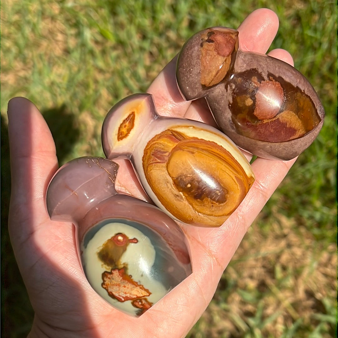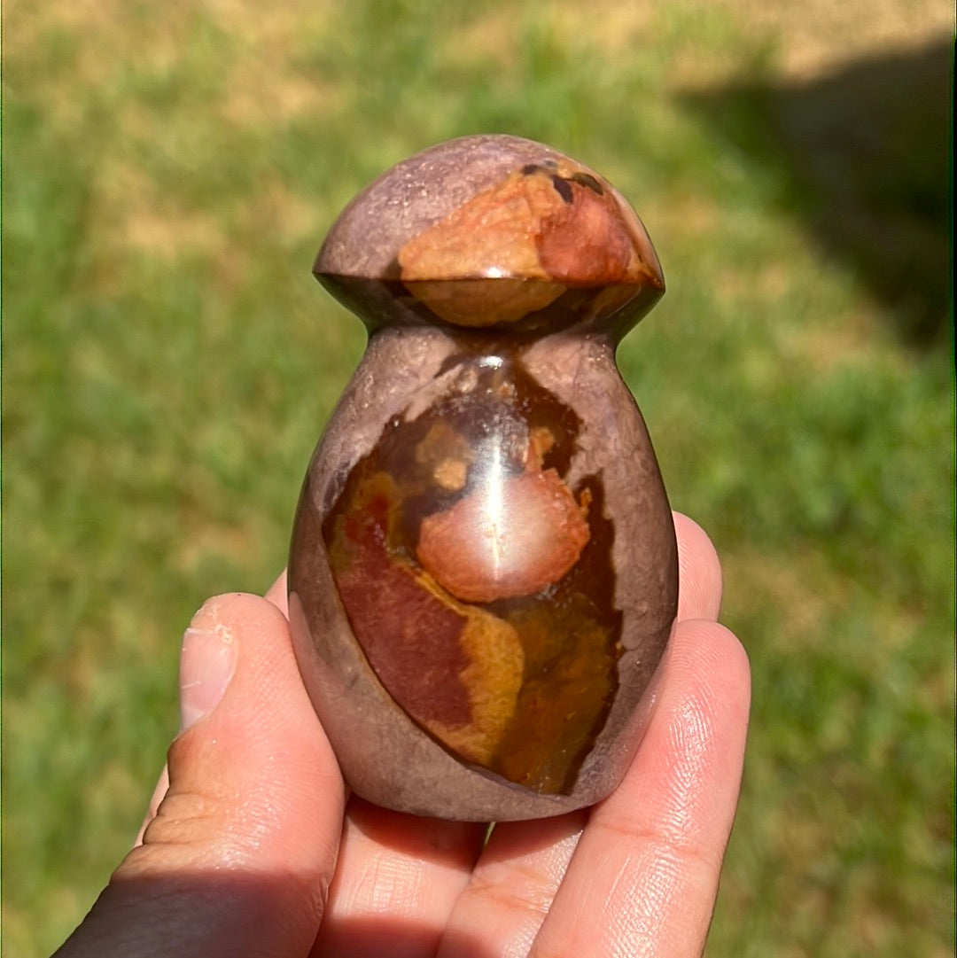 The cutest purple polychrome jasper mushrooms with unique patterns!