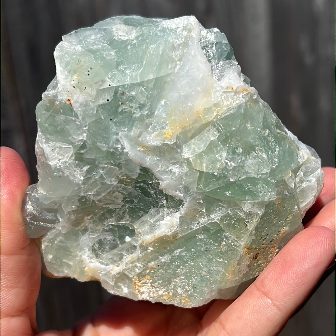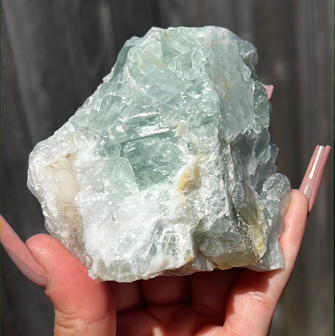 This beautiful Rough Fluorite Chunks has vibrant blue-green color and the cutest pocket of sparkling Quartz!