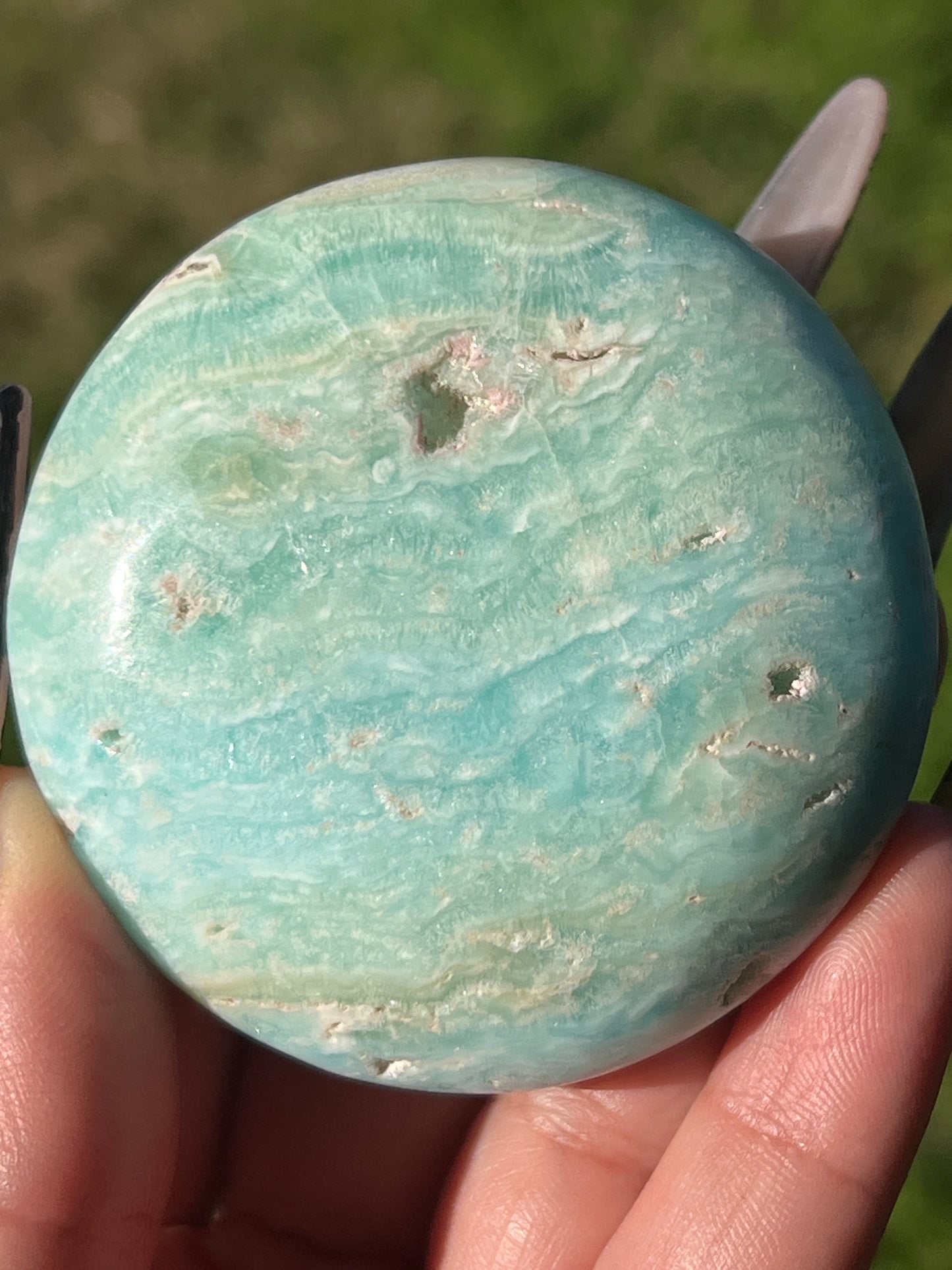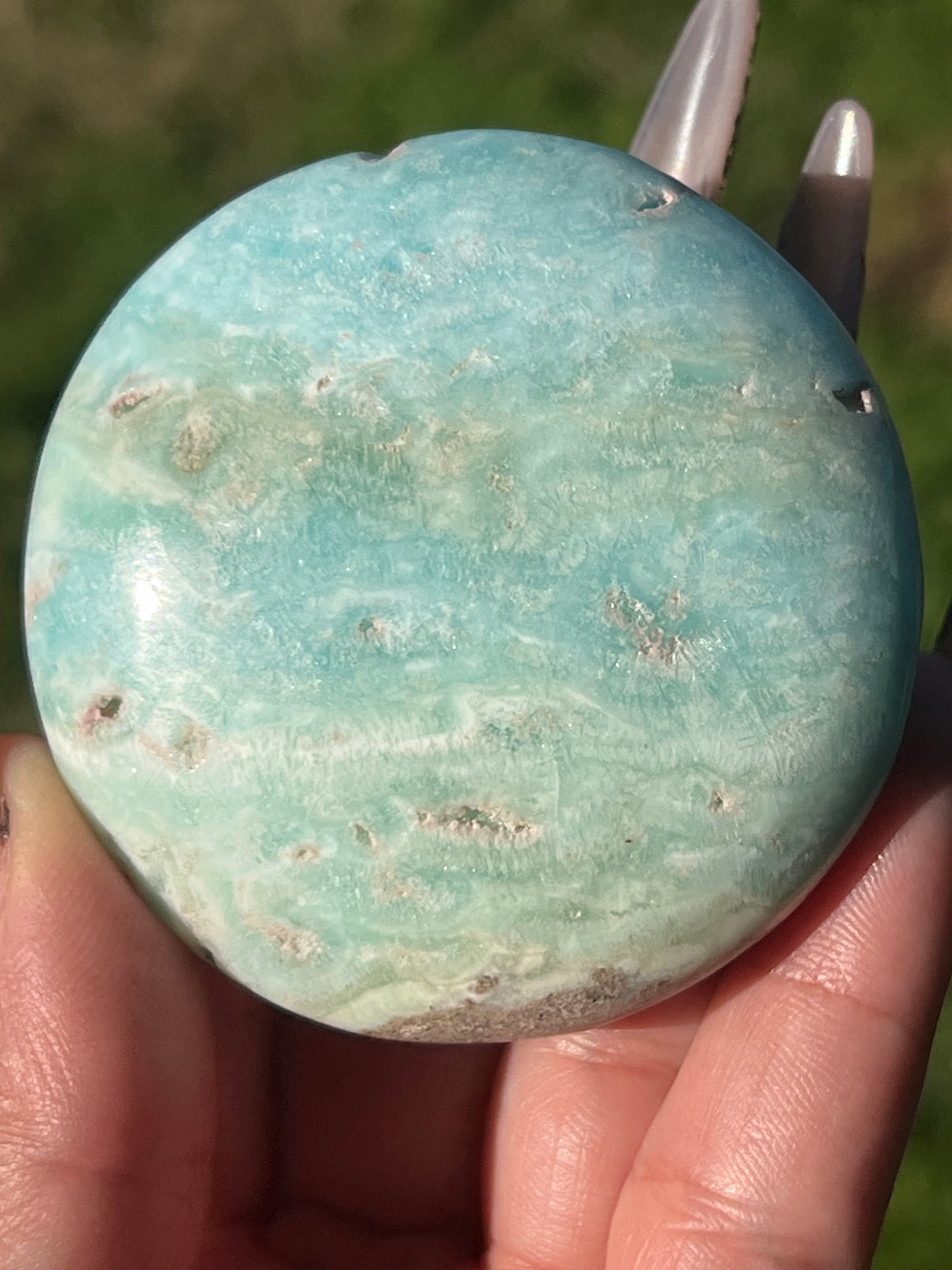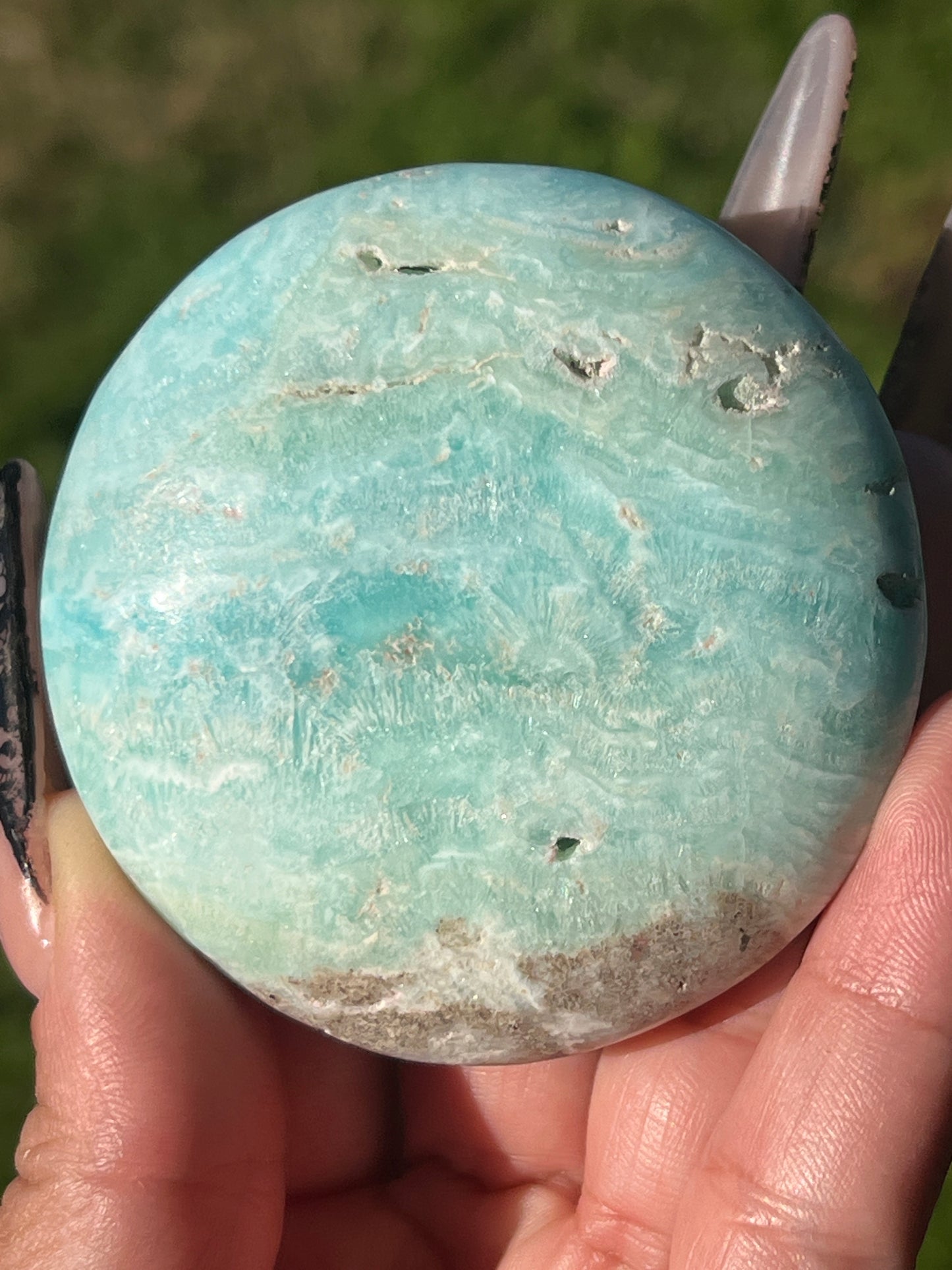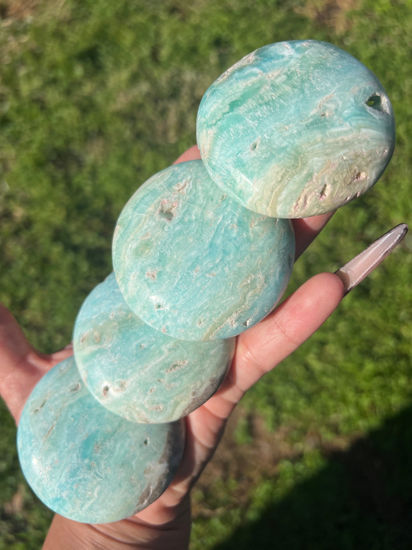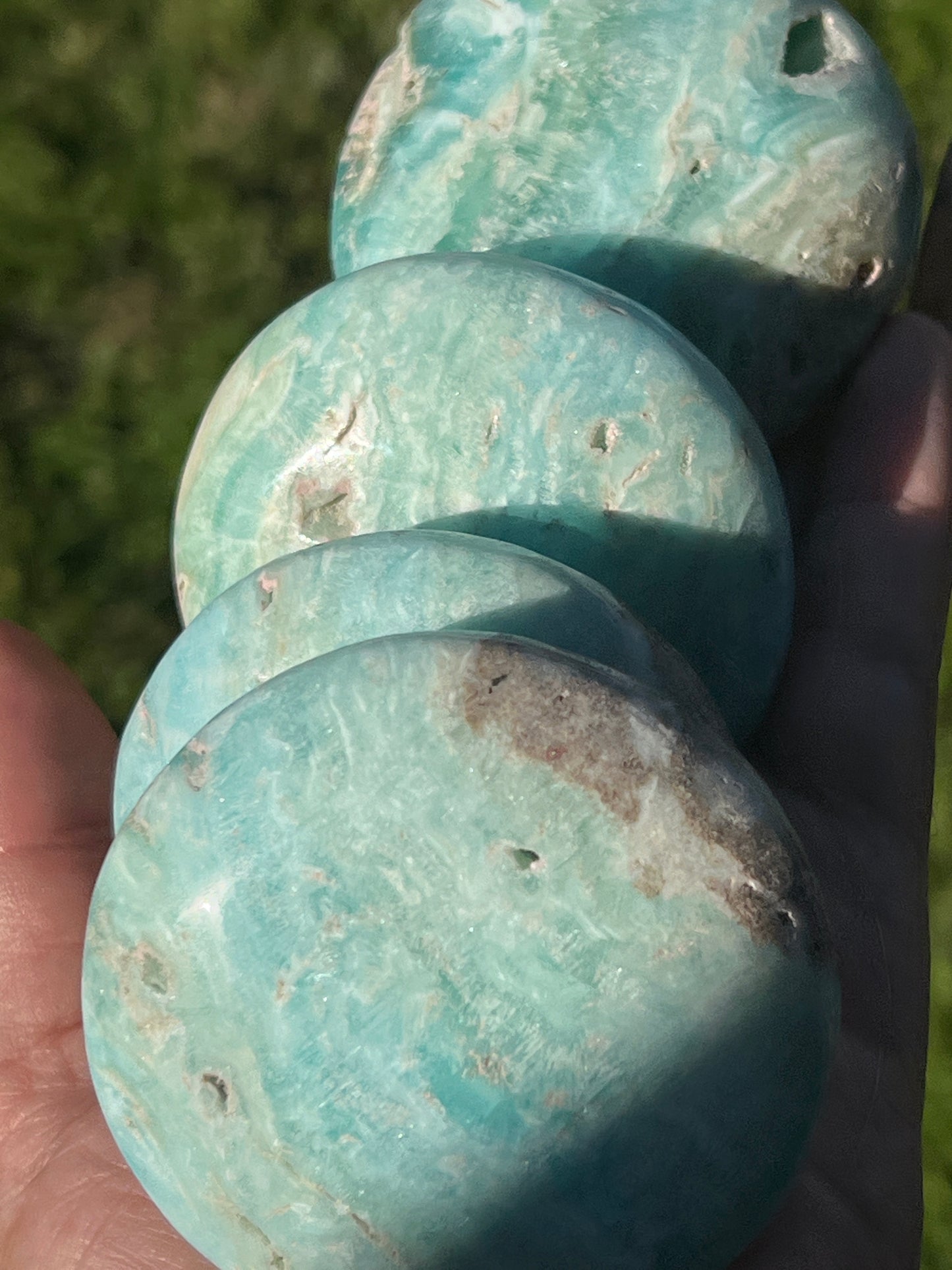 These amazing ocean blue palm stones give the sense of wonder and peace, like the open ocean and crisp lapping waves. *Individually sold*