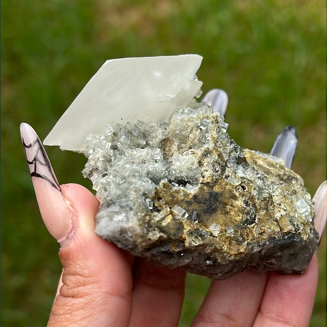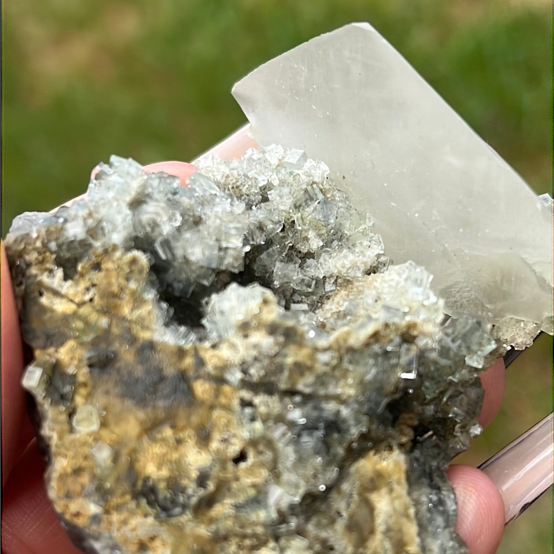 A super special and unique combination of fluorescent micro-cubes with a stellar chunk of quartz! This stunning find comes from the Yindu Mine in Inner Mongolia, China!