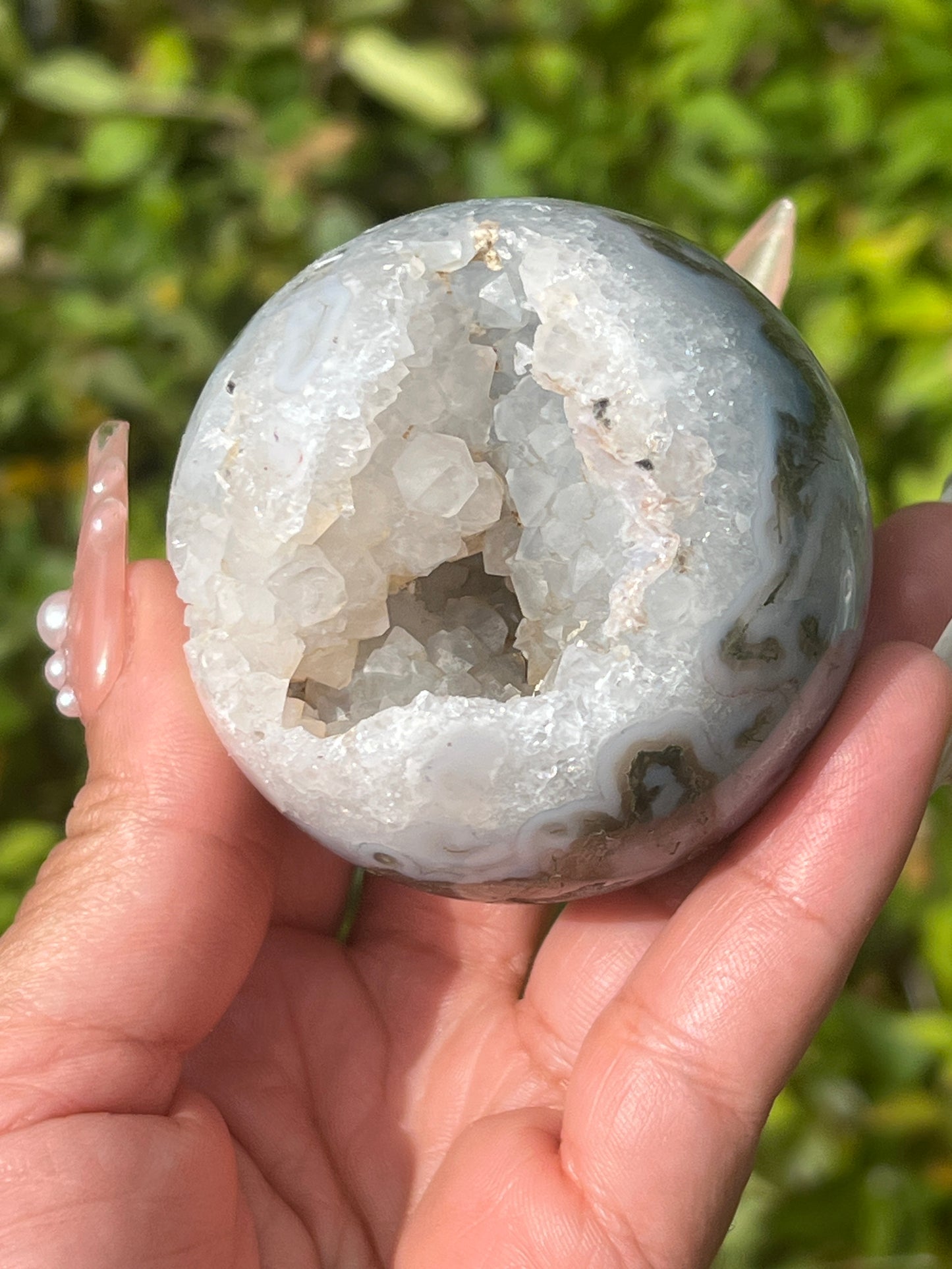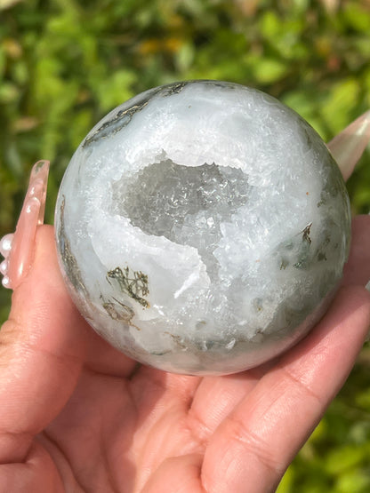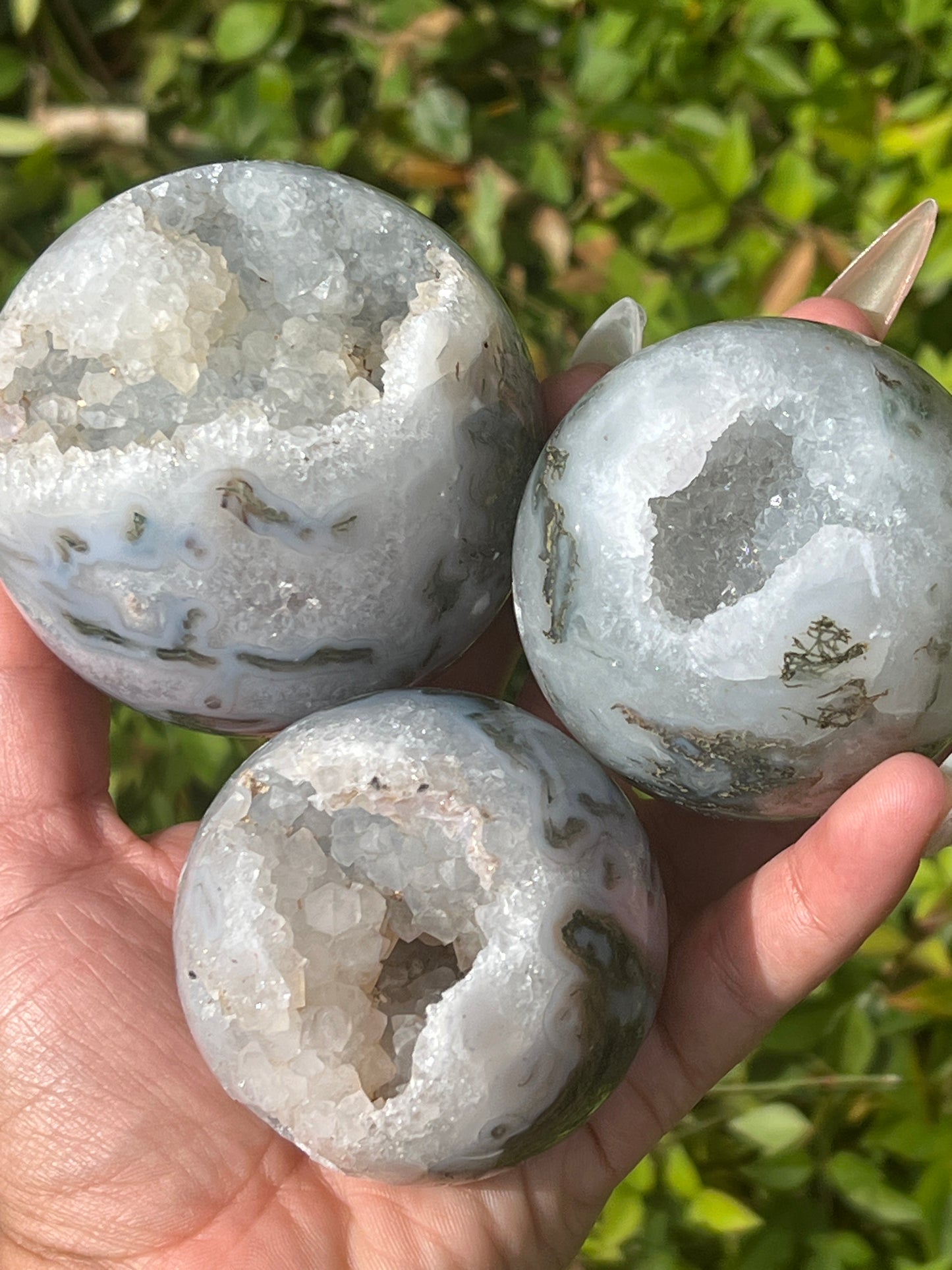 “Sparkling Pockets” Druzy Moss Agate Spheres